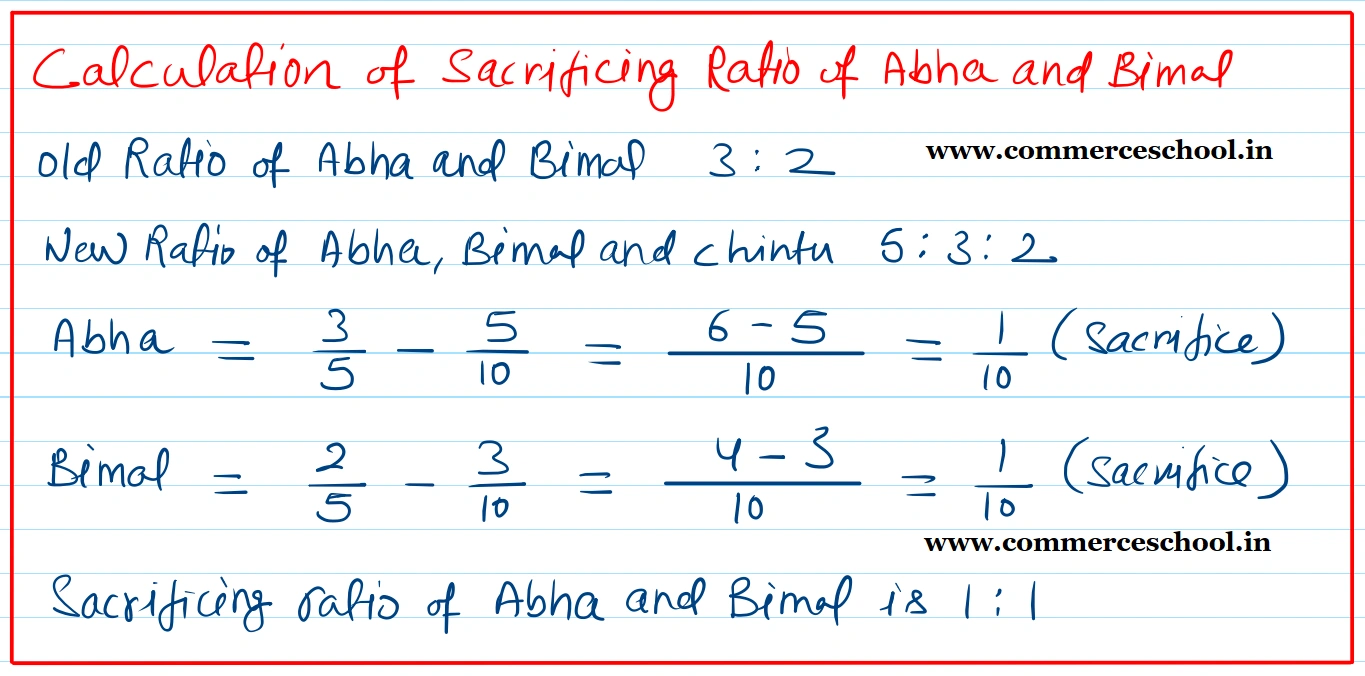 Abha and Bimal are partners in a firm sharing profits and losses in the ratio of 3 : 2. On 31st March, 2015 they admitted Chintu into partnership for 1/5th share in the profits of the firm