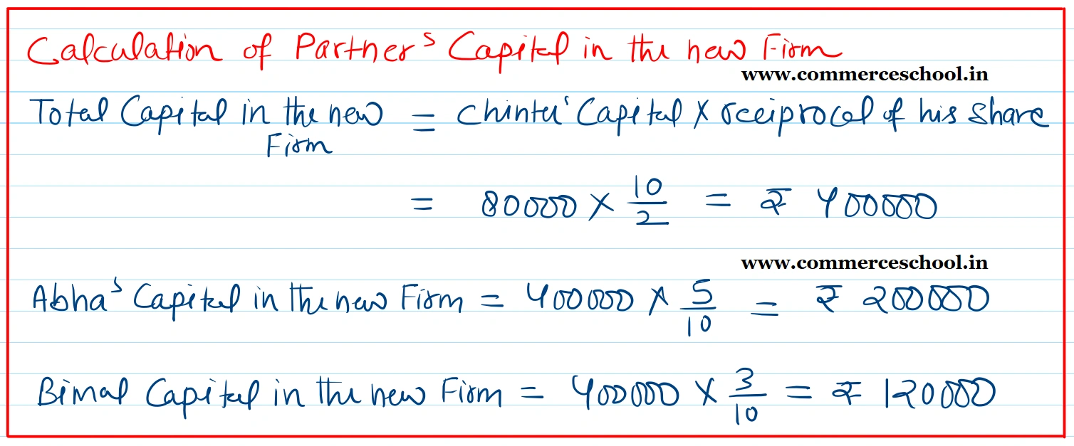 (iv) After making adjustments, the Capital Accounts of the partners will be in proportion to Chintu’s Capital. Balance to be paid off or brought in by the old partners by cheque as the case may be.