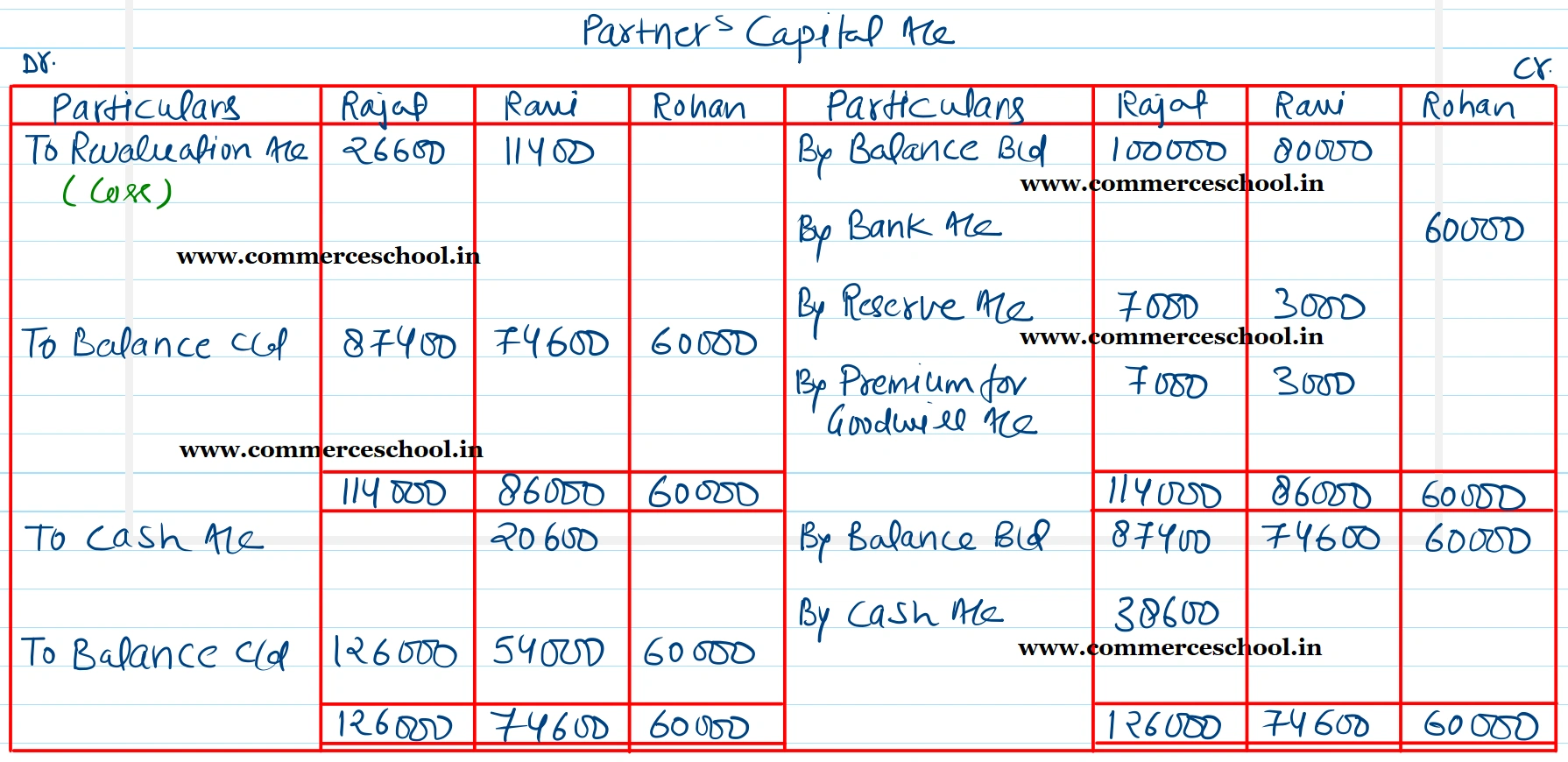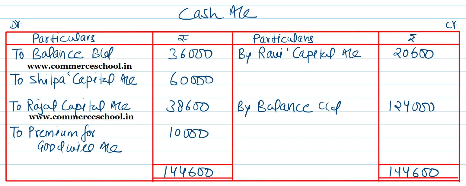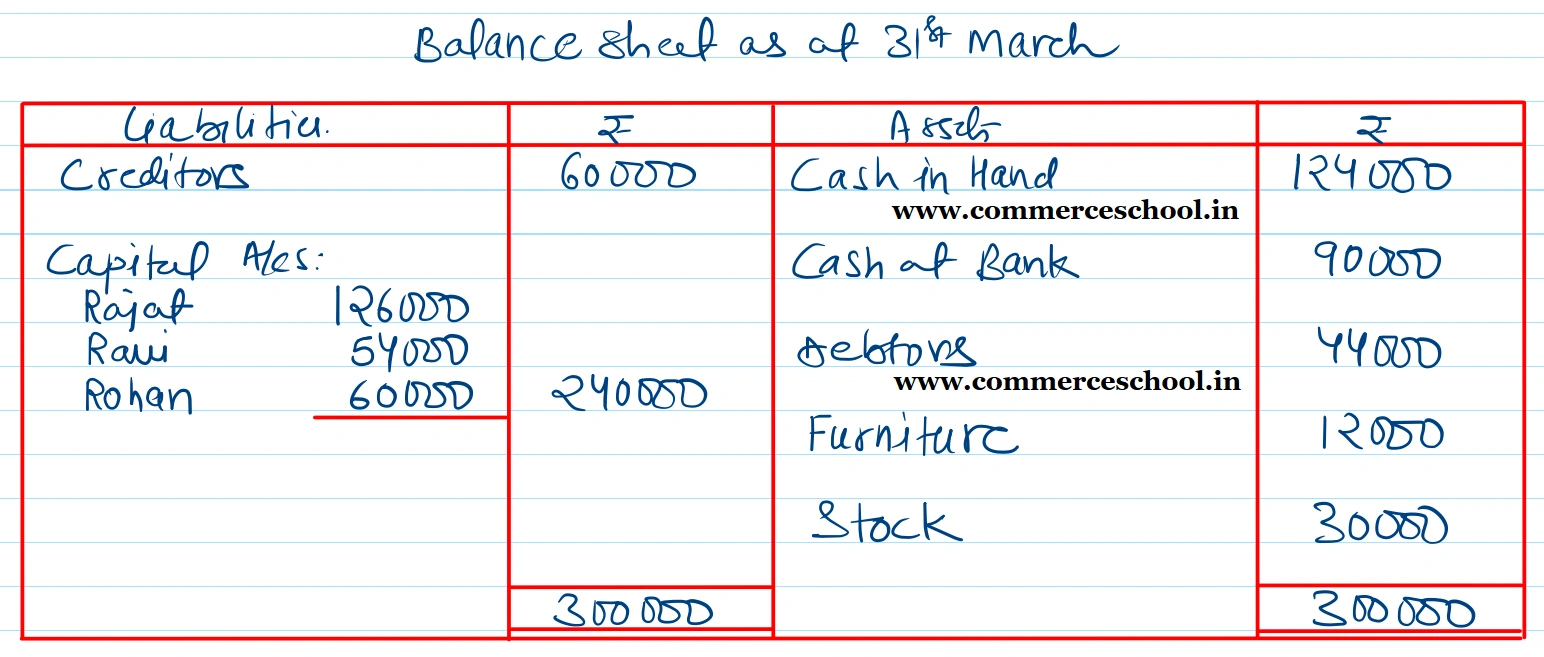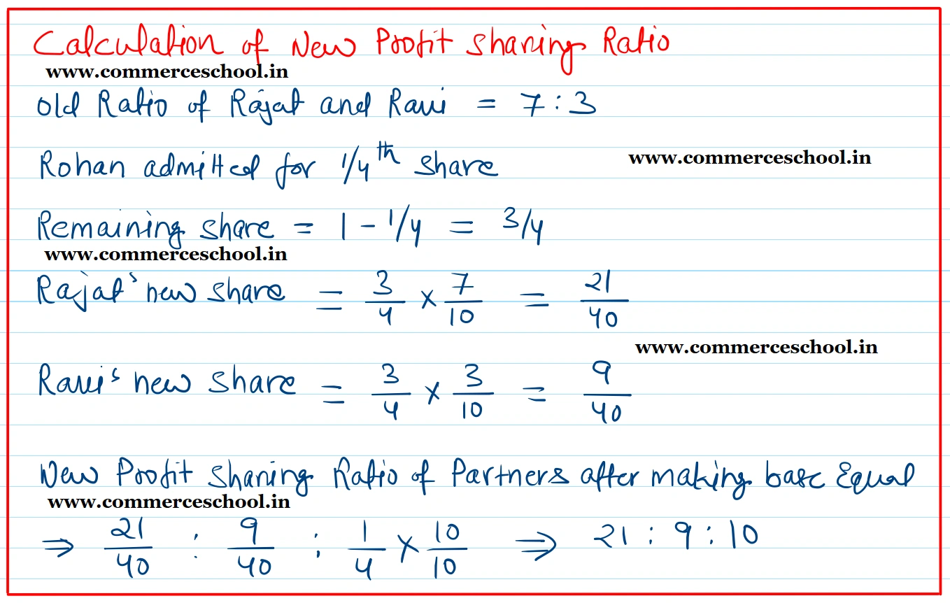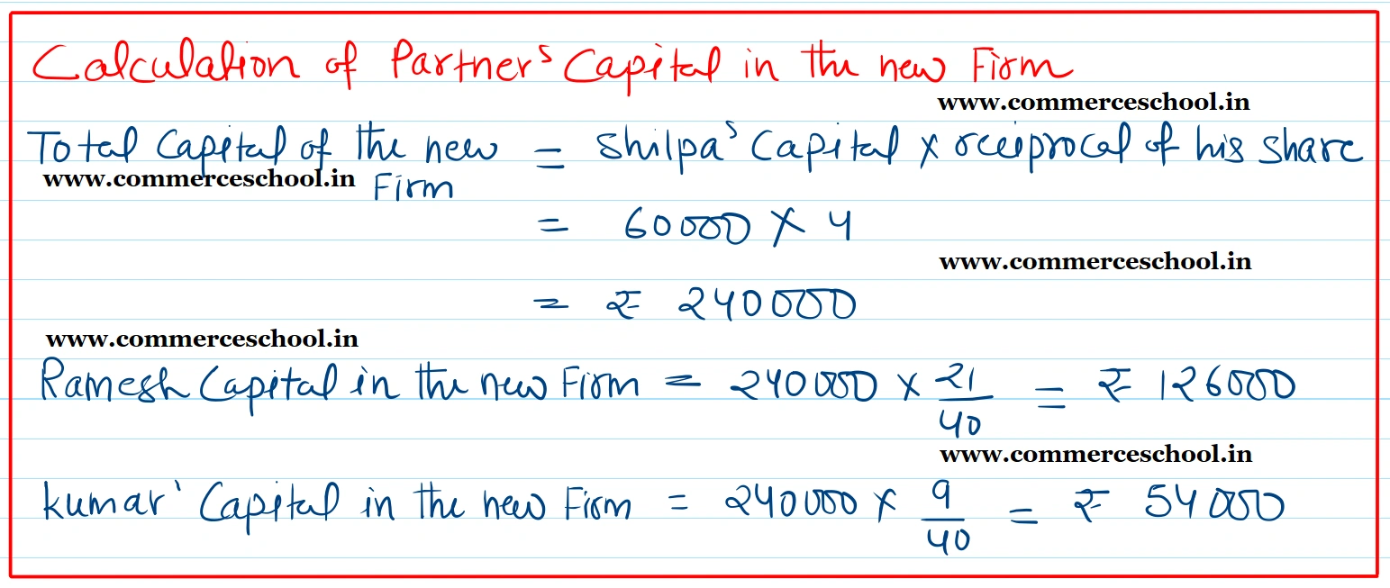 (iii) Capitals of the partners shall be proportionate to their Profit Sharing Ratio taking Rohan’s Capital as base. Adjsutments of Capitals to be made by cash.