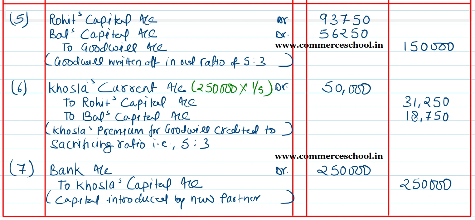 On April 1st, 2022, they decided to admit Khosla into the partnership giving him 1/5th share. He brings in ₹ 2,50,000 as his share of capital. The partners decide to revalue the Assets as follows: