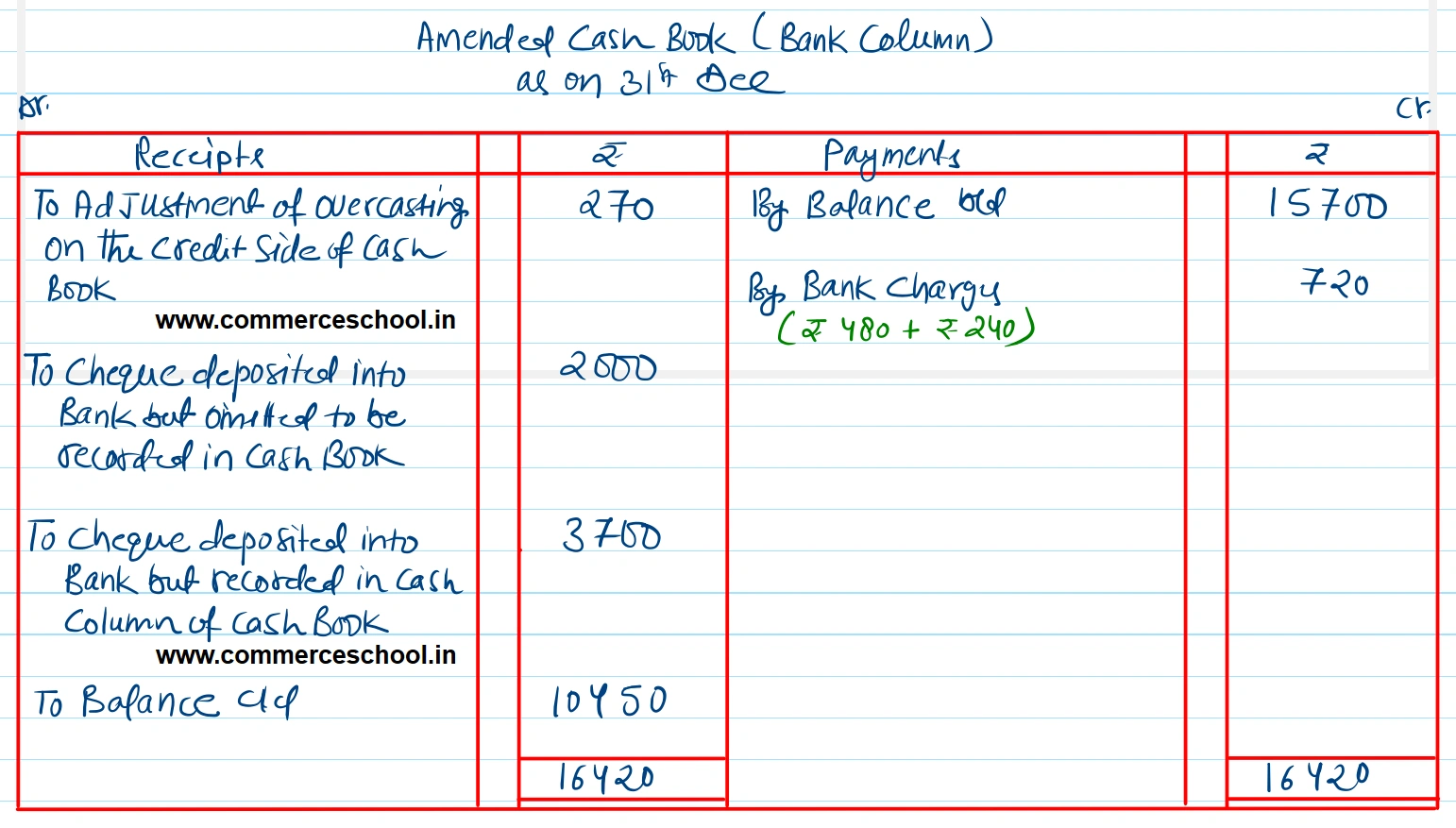 (vi) A cheque for ₹ 3,700 deposited into the bank appear in the Pass Book, was recorded in the cash column of the Cash Book.