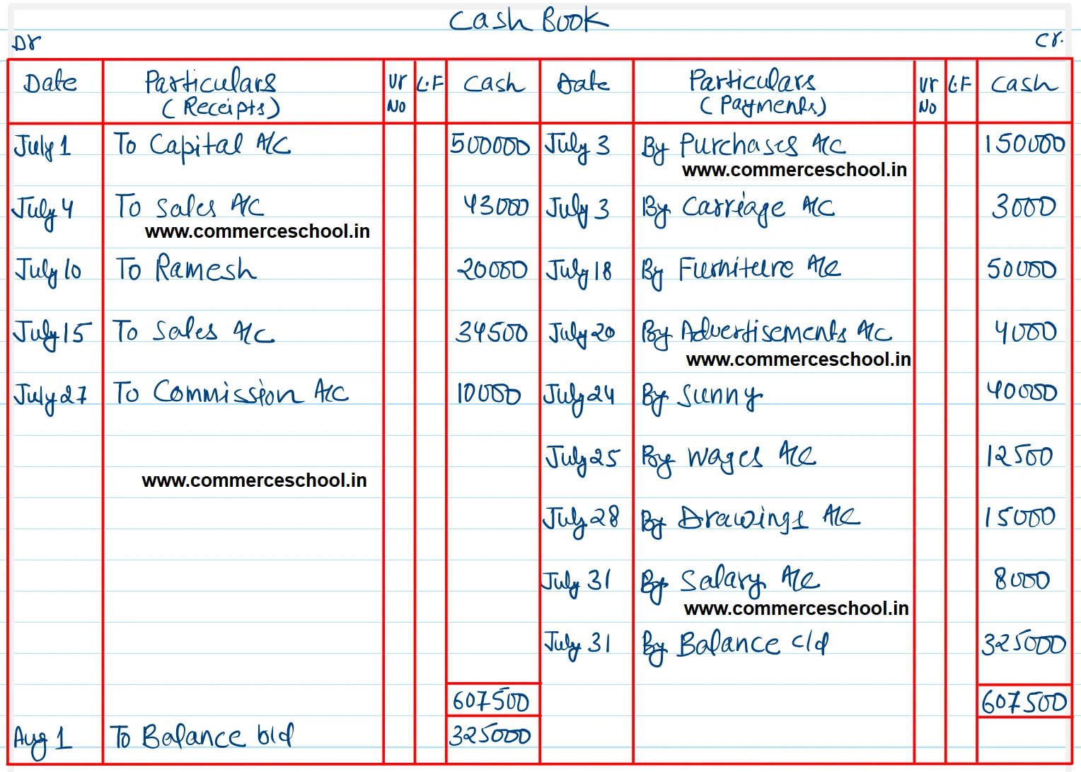 | July 1 | Commenced business with Cash | 5,00,000 |