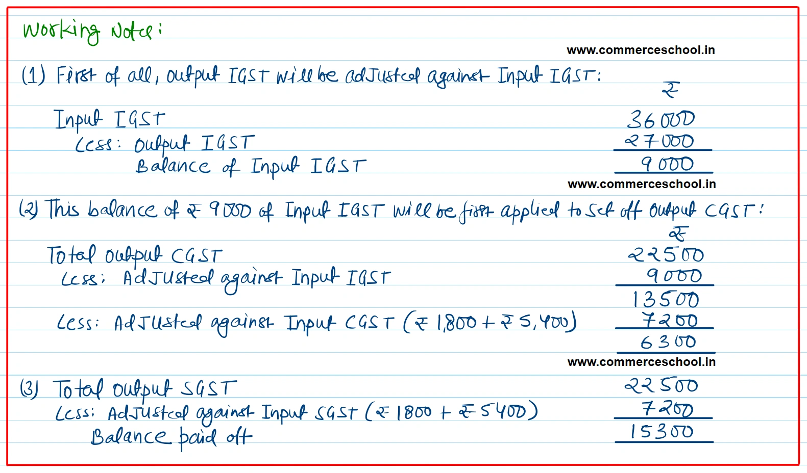 (vi) Payment made of balance amount of GST