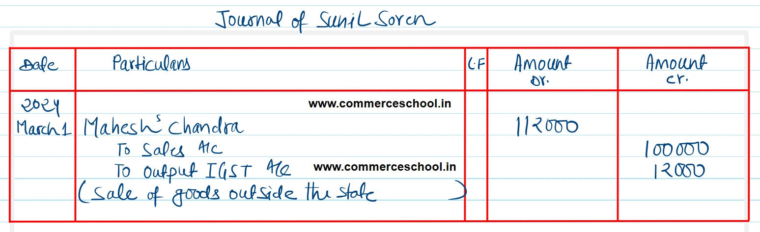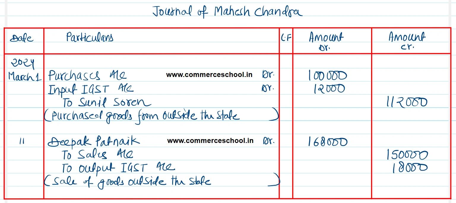 March 1 Mahesh Chandra of Bihar purchased goods for ₹ 1,00,000 from Sunil Soren of Jharkhand and sold the same to Deepak Patnaik of Odisha for ₹ 1,50,000.