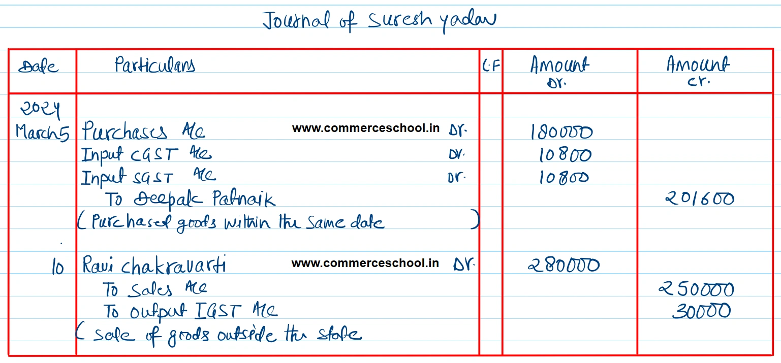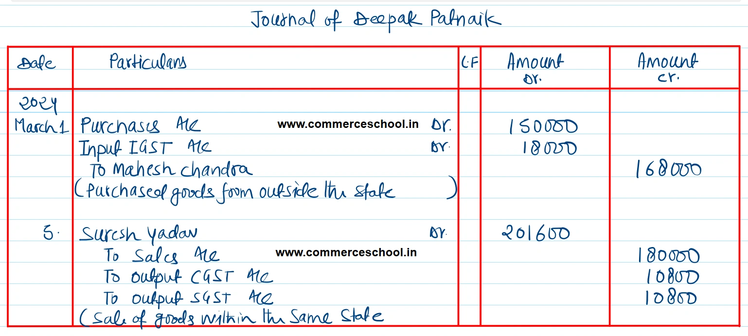 March 5 Deepak Patnaik sold goods to Suresh Yadav of Odisha for ₹ 1,80,000.