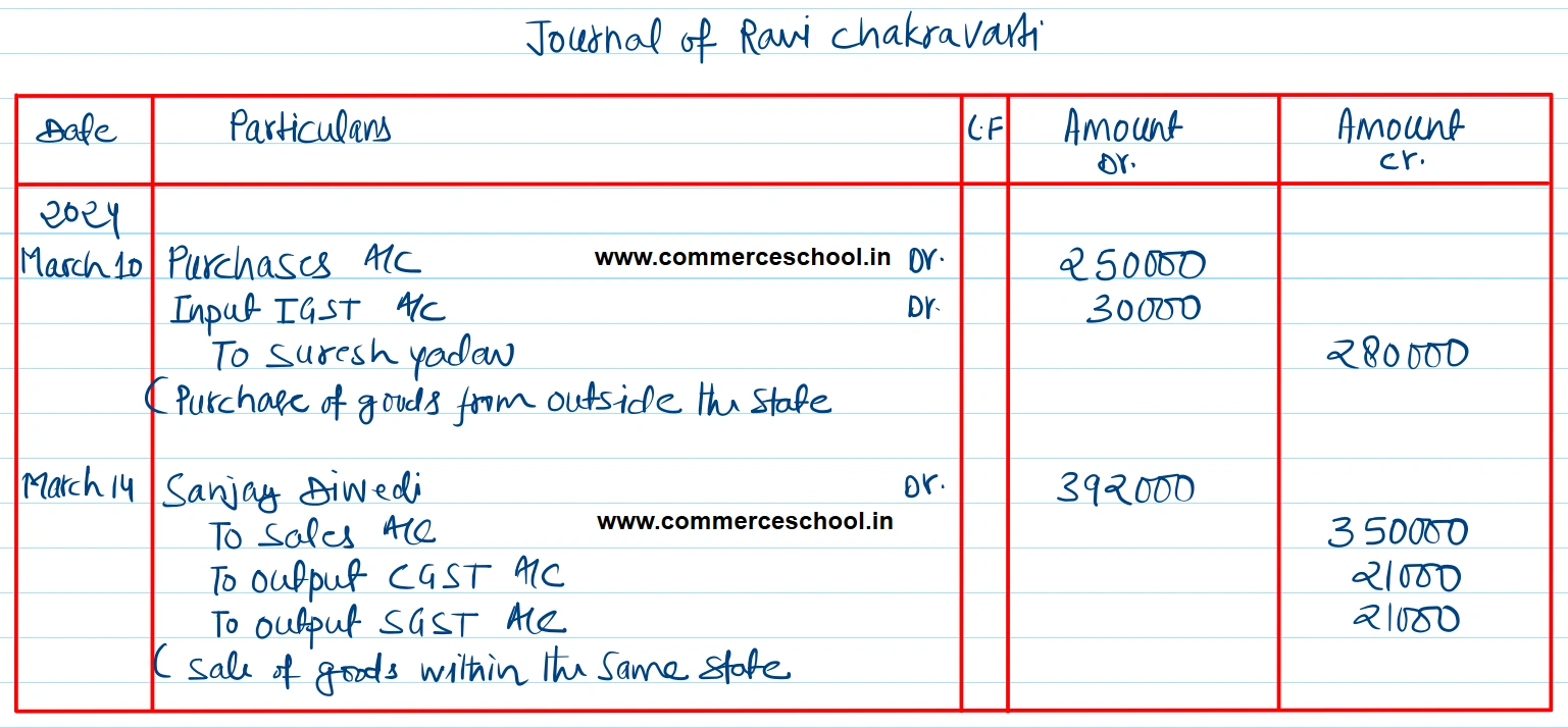 March 10 Suresh Yadav sold goods to Ravi Chakravarti of West Bengal for ₹ 2,50,000.