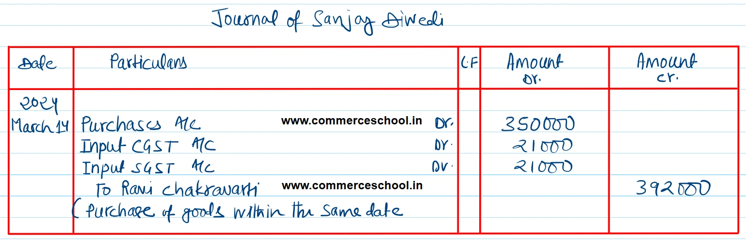 March 14 Ravi Chakravarti sold goods costing ₹ 2,50,000 to Sanjay Diwedi of West Bengal at a profit of 40% on cost.