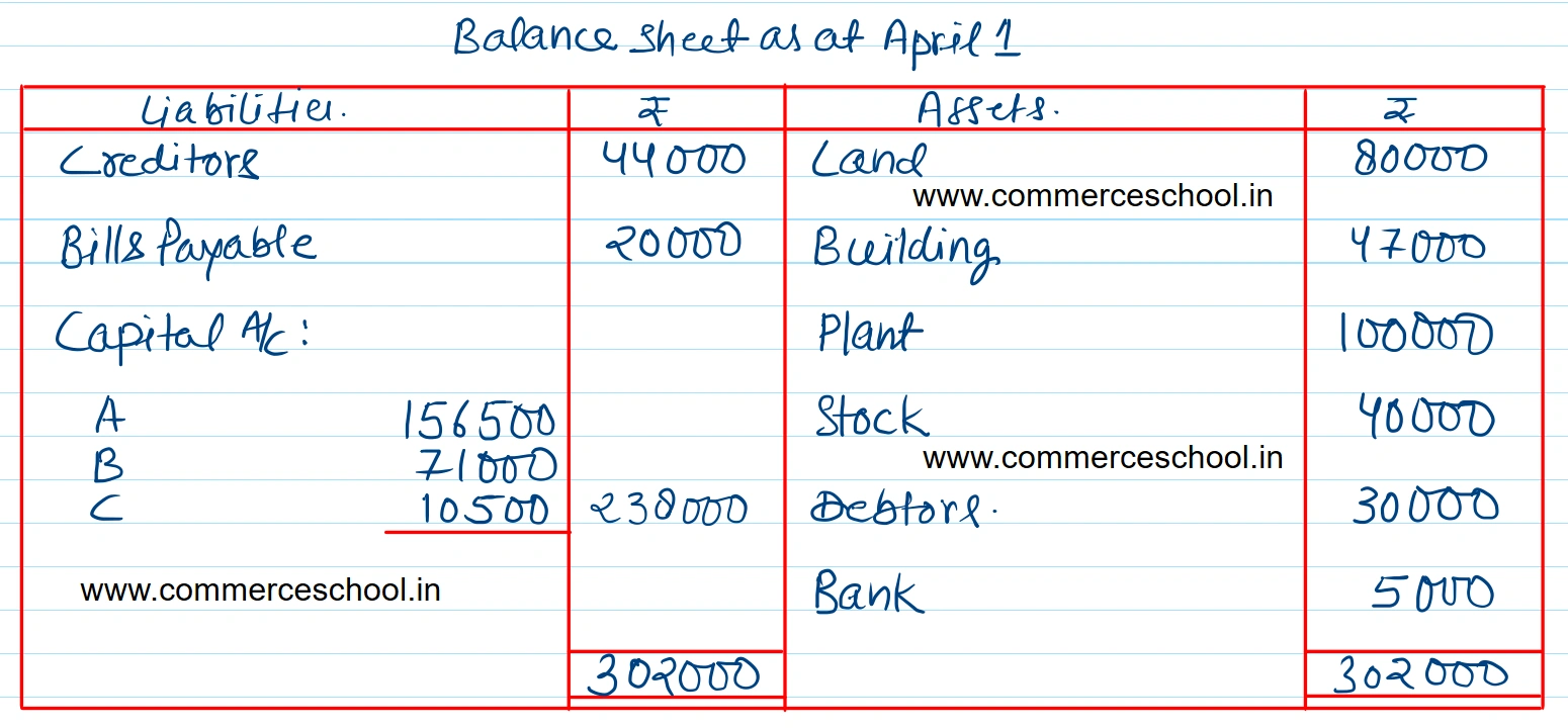 From 1st April 2015, A, B, and C decided to share profits equally. For this, it was agreed that: