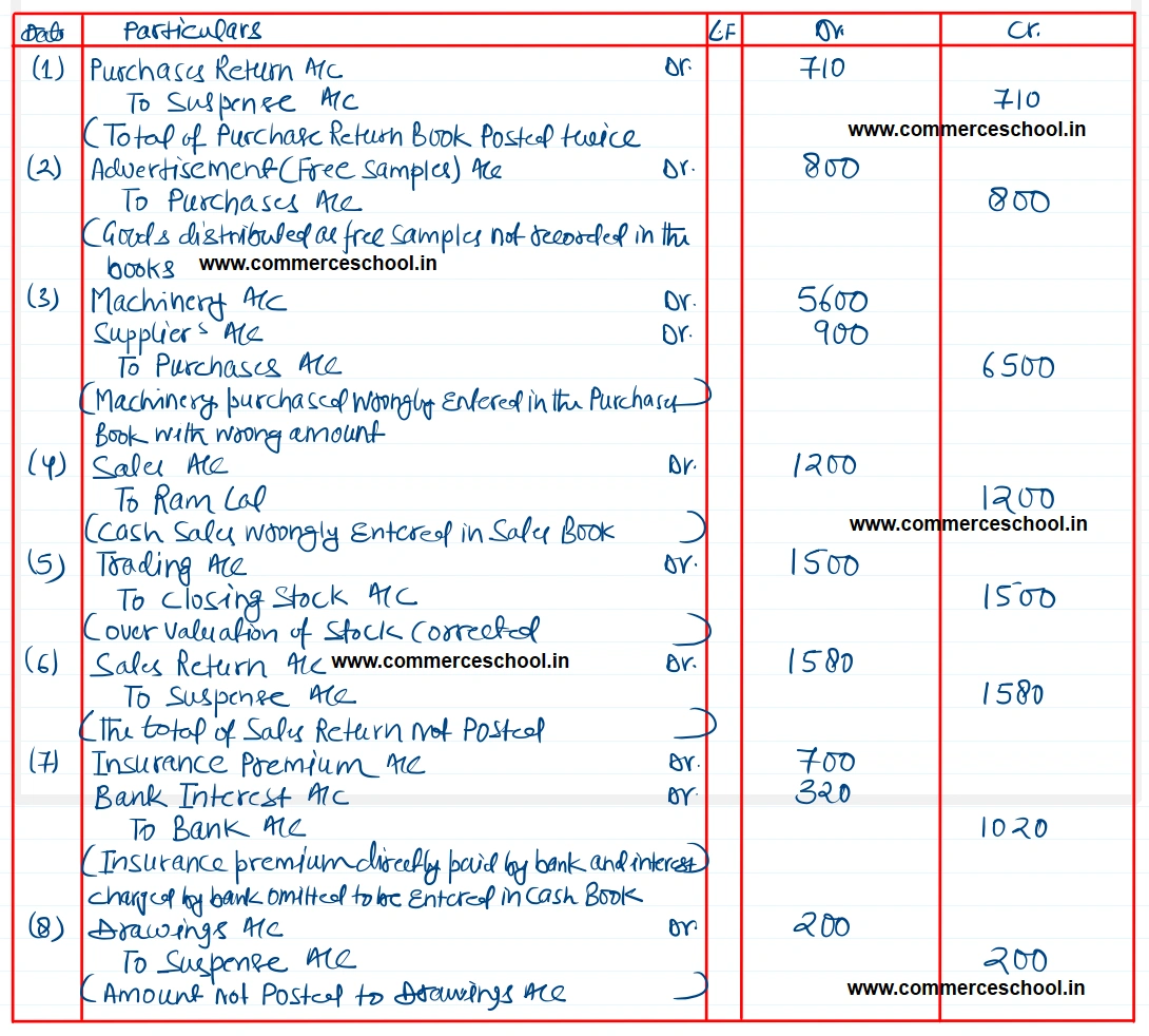 Pass entries to rectify the above errors. Close the Suspense Account already opened.