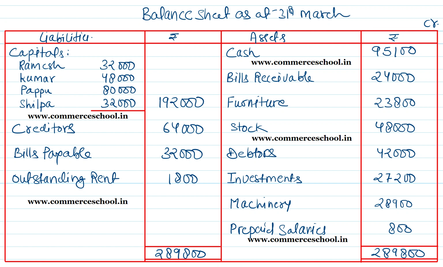 Balance Sheet as at 31st March, 2024 of Ramesh, Kumar and Pappu who were sharing profits and losses in the ratio of 2 : 3 : 5.