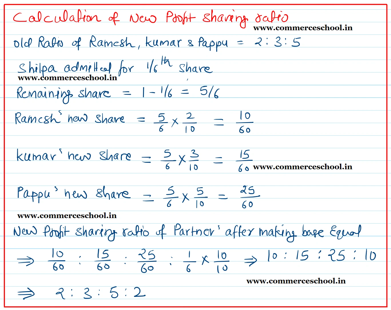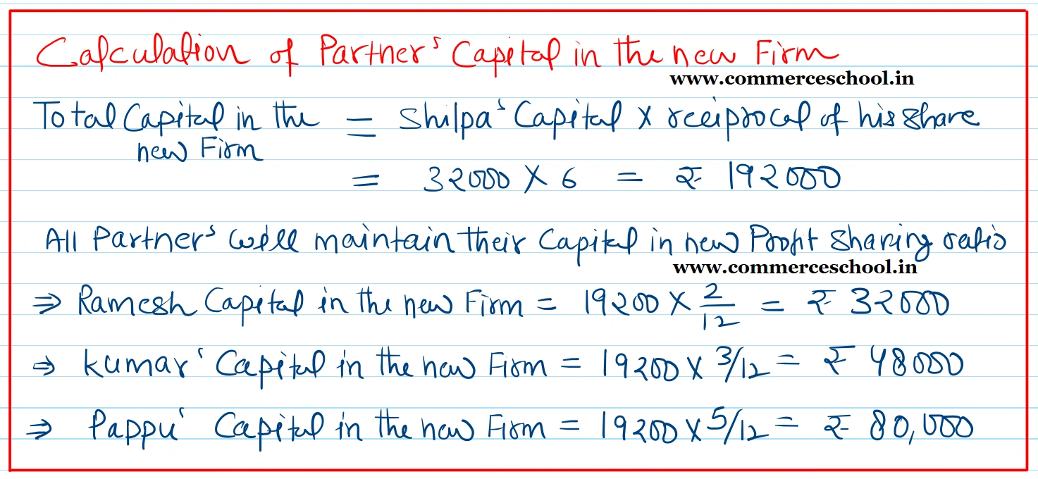 (4) Shilpa to bring ₹ 32,000 towards capital for 1/6th share and old partners to adjust their capitals accordingly.