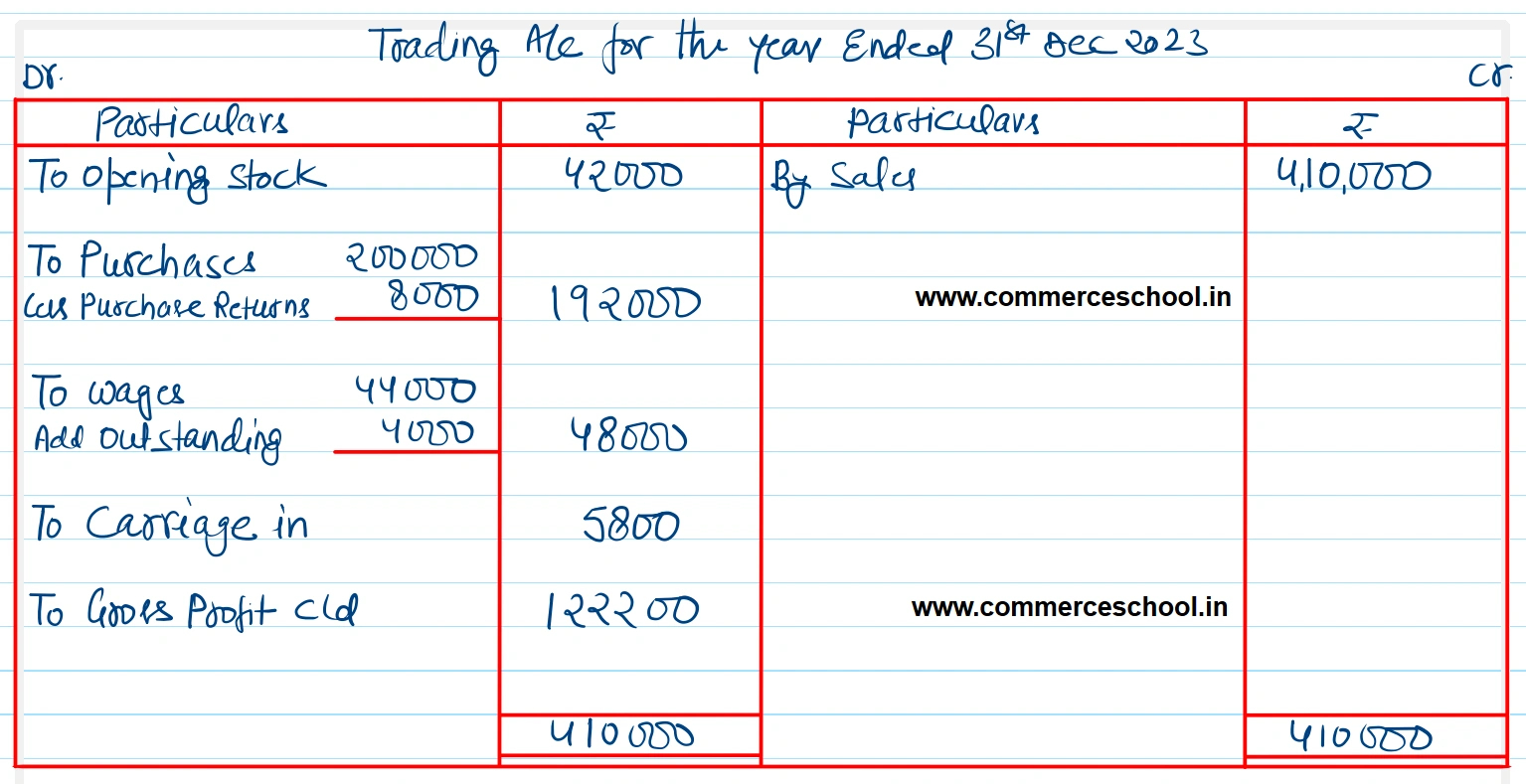 | Opening Stock | 42,000 | Sales | 4,10,000 |