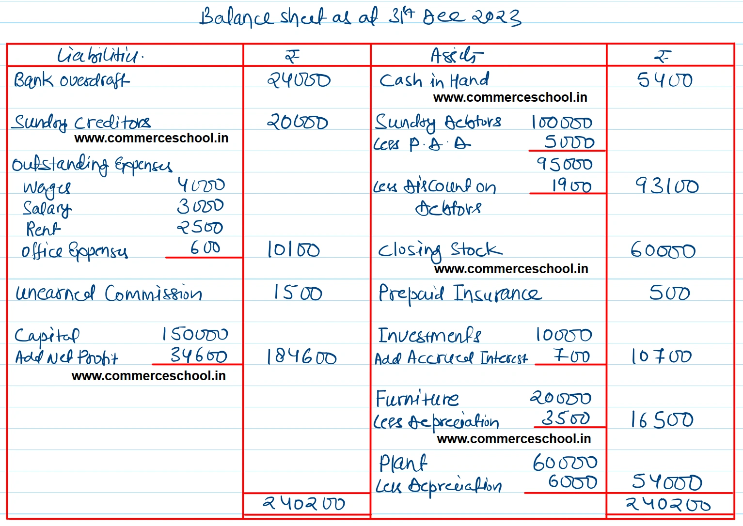 (1) Create a provision for Doubtful Debts @ 5% on Debtors and 2% for discount on Debtors.