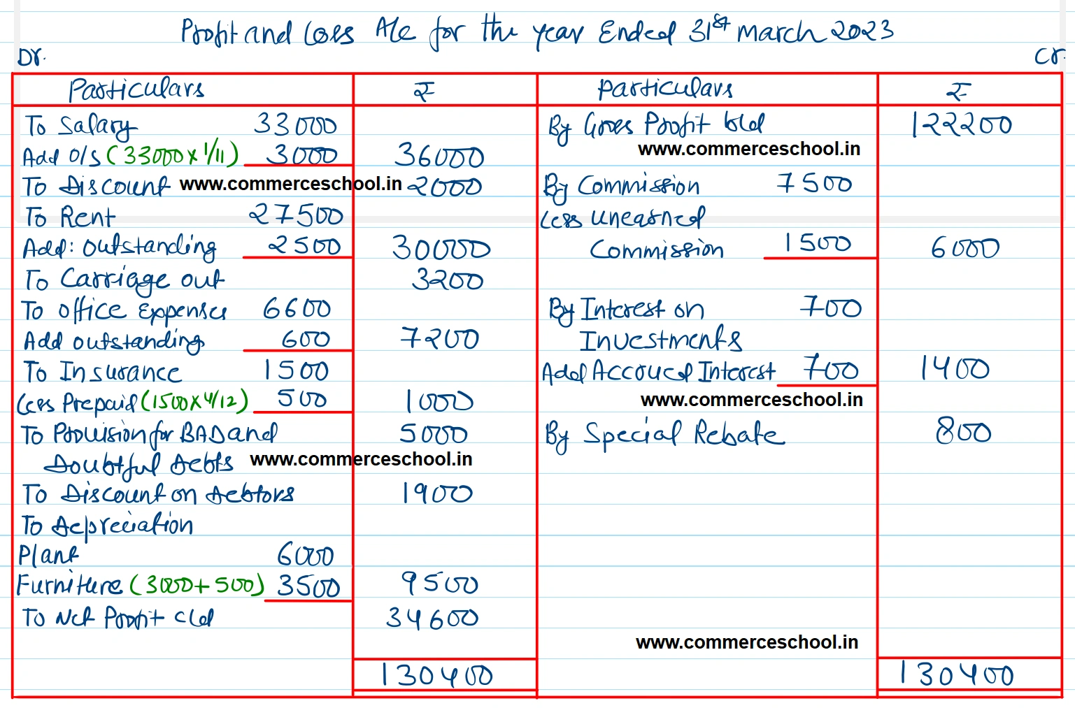 | Furniture (Including Furniture of ₹ 5,000 purchased on 1st July, 2022) | 20,000 | Special Rebate | 800 |