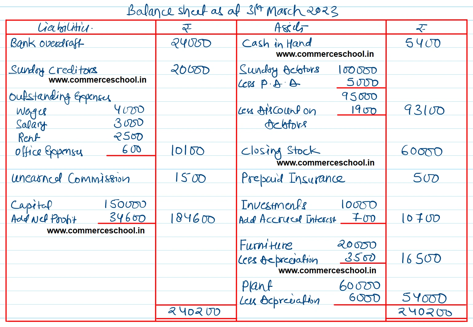 (1) Create a provision for Doubtful Debts @ 5% on Debtors and 2% for discount on Debtors.