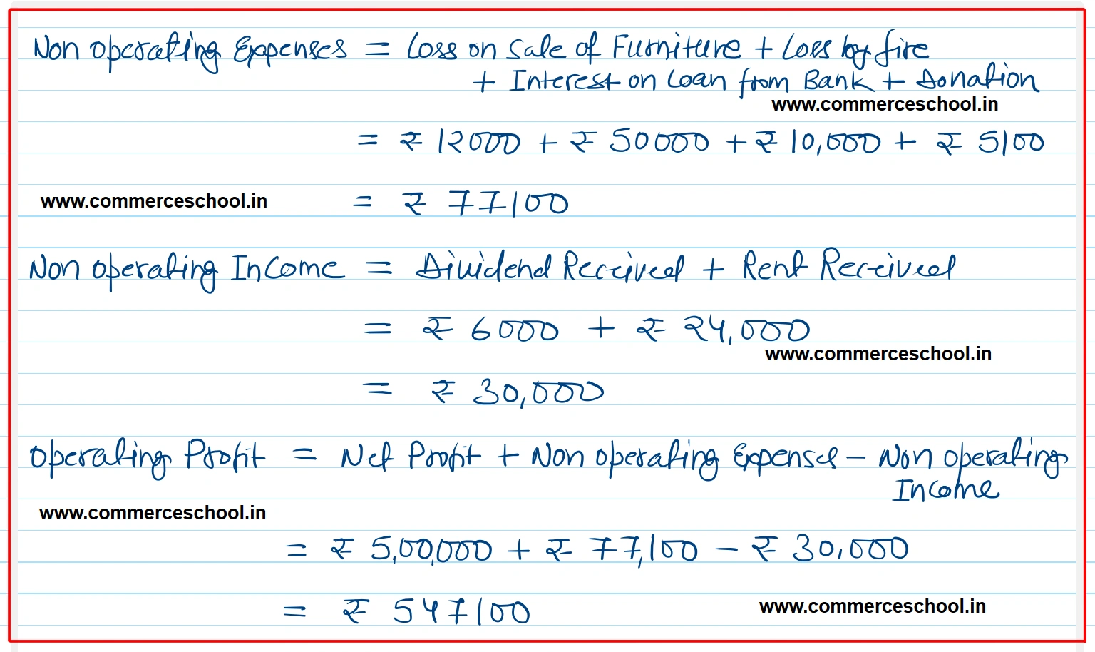Calculate operating profit from the following: Net Profit ₹ 5,00,000 Dividend Received ₹ 6,000