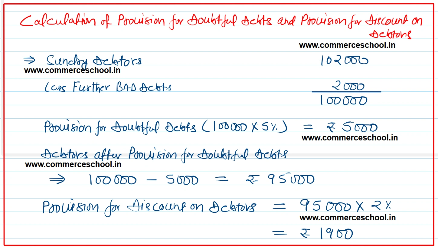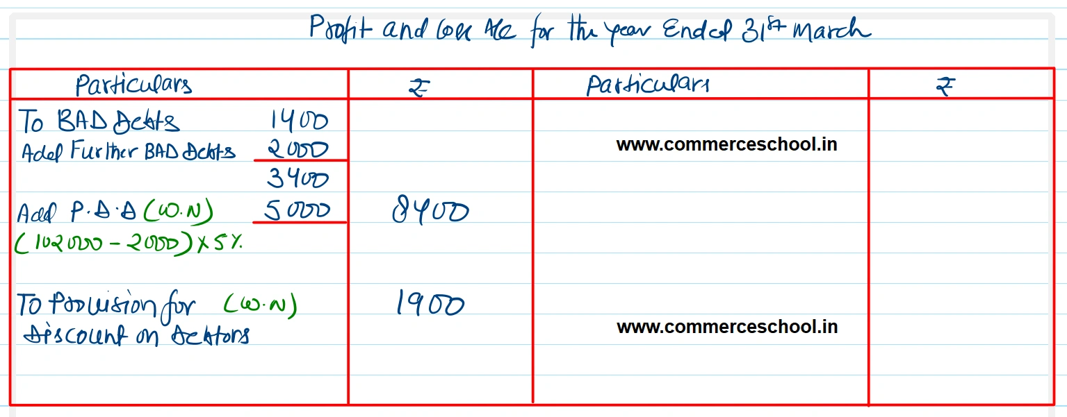 A debtor of ₹ 2,000 could not be recovered. It is decided to maintain Provision for Doubtdul Debtors @ 5% on Debtors and Provision for Discount at @ 2%.