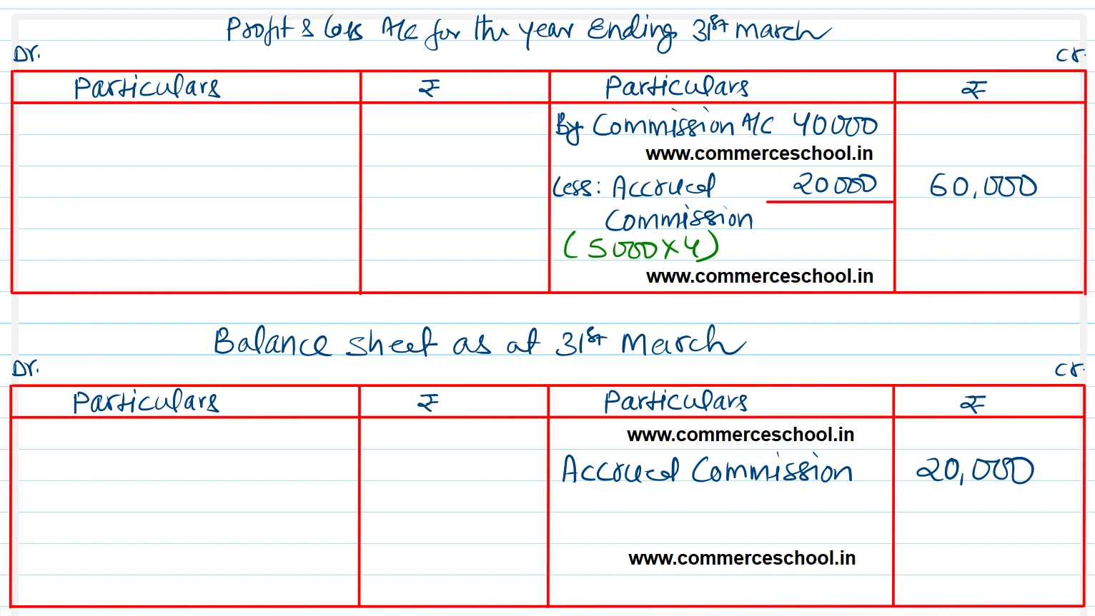 Additional Information: Commission is receivable @ ₹ 5,000 per month for four months. Show the treatment of Commission in the Final Accounts.