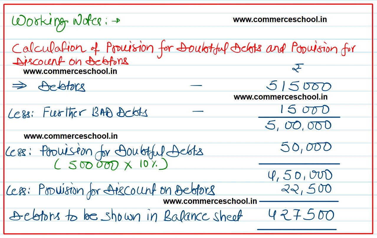(iii) Create Provision for Discount on Debtors @ 5% on Debtors.