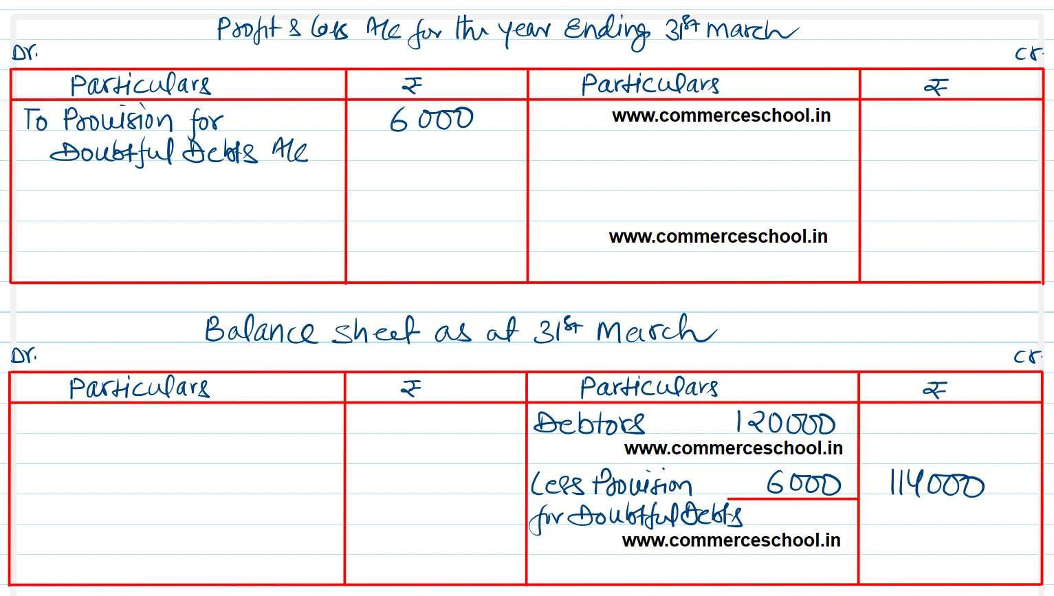 Adjustment: Create a Provision for Doubtful Debts @ 5% on Debtors.