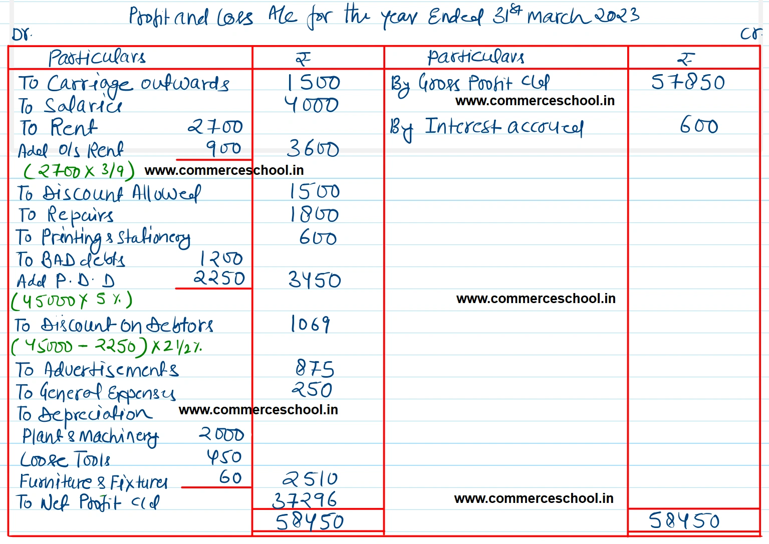 (1) Rent shown in the Trial Balance is for 3 quarters or for 9 months. As such Rent Outstanding for the remaining 3 months will be 2,700/9 x 3 = ₹ 900.
