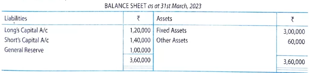 | Long’s Capital A/c Short’s Capital A/c General Reserve |