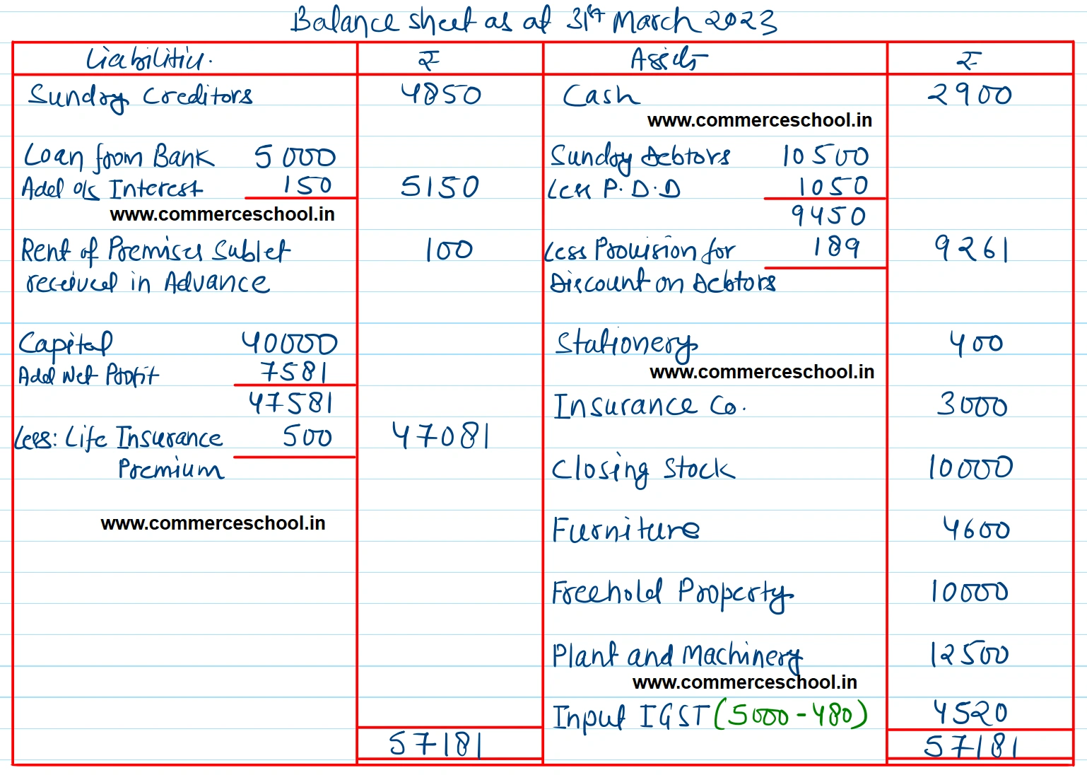 [Ans. G.P. ₹ 21,100; N.P. ₹ 7,581; B/S Total ₹ 57,181.]