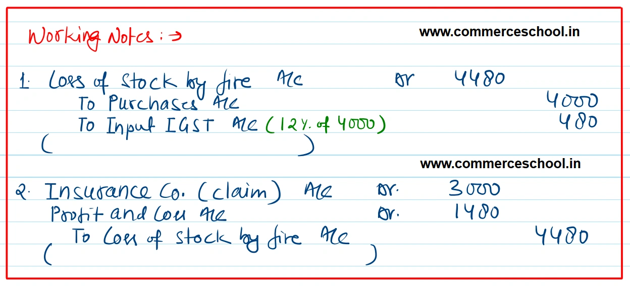(v) Stock of the Value of ₹ 4,000 was destroyed by fire on 25th March, 2023. Stock was purchased paying IGST @ 12%. A Claim of ₹ 3,000 has been admitted by Insurance Co.