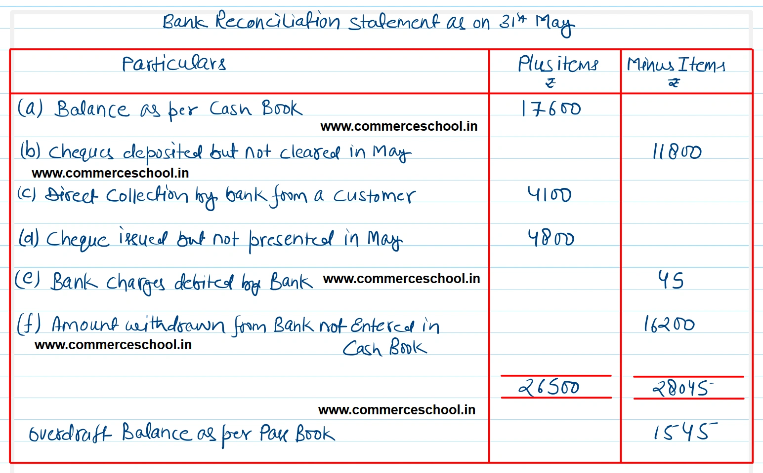 [Ans. Overdraft Balance as per Pass Book ₹ 1,545.]