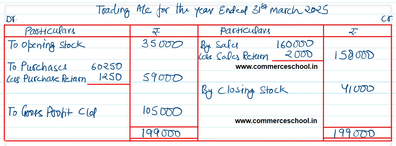| Sales Return and Purchases Return | 2,000 | 1,250 |