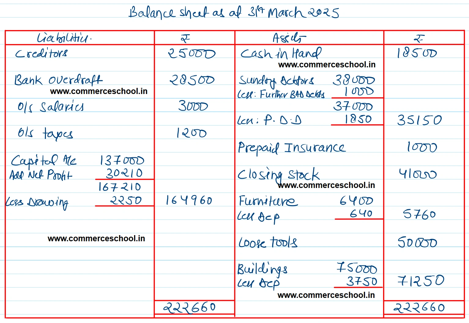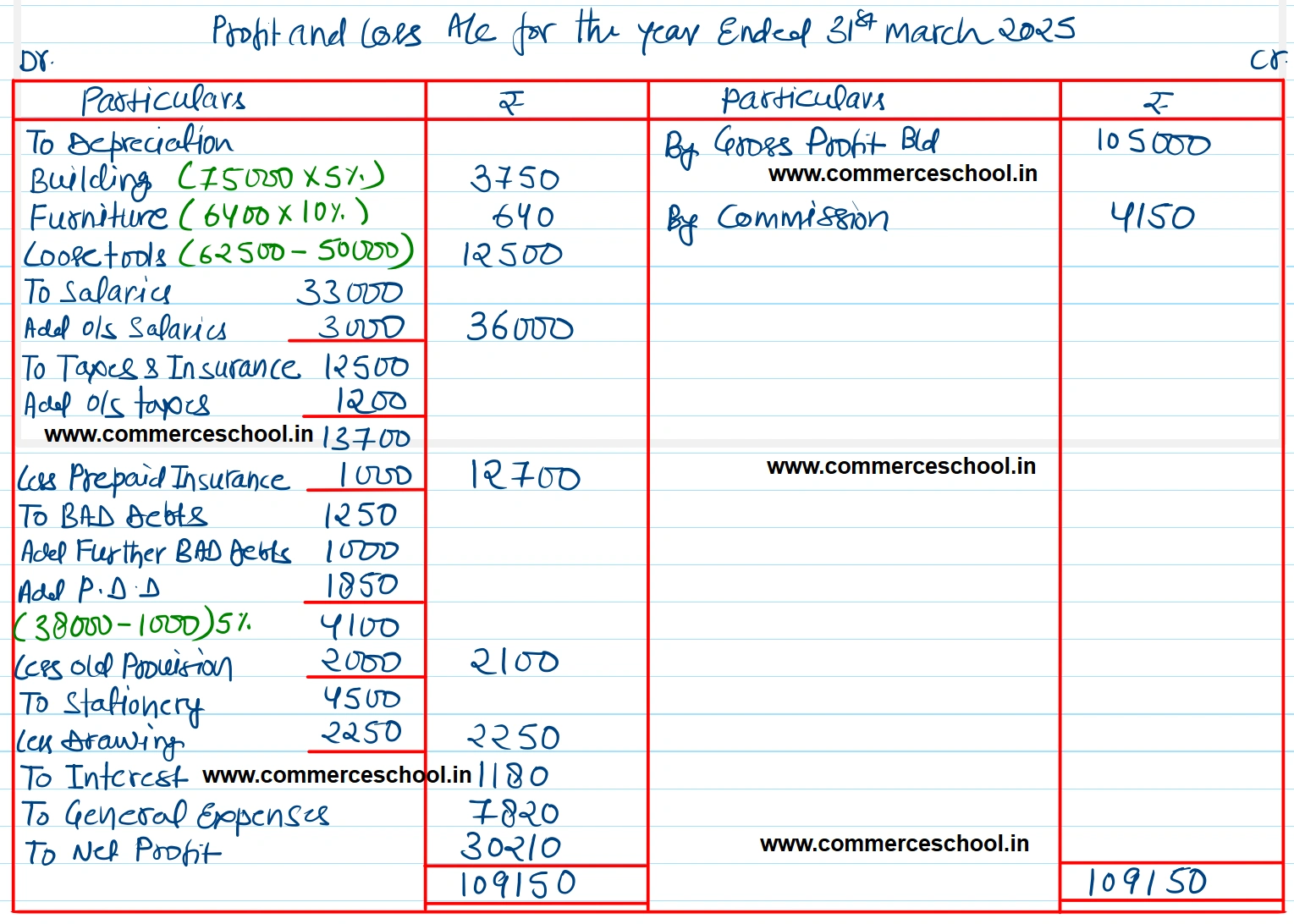 (i) Depreciate Buildings at 5% and Furniture at 10%. Loose Tools are revalued at ₹ 50,000 at the end of the year.