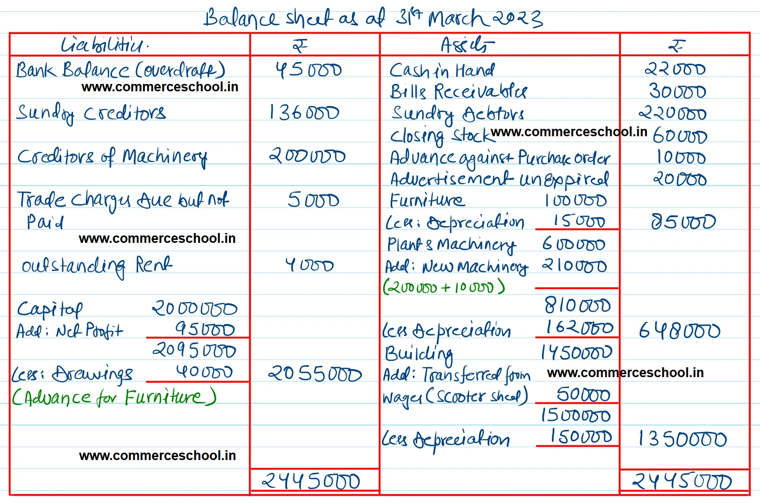 (i) Creditors for Machinery ₹ 2,00,000 will be shown in Liabilities. Depreciation on Plant & Machinery ₹ 1,62,000.