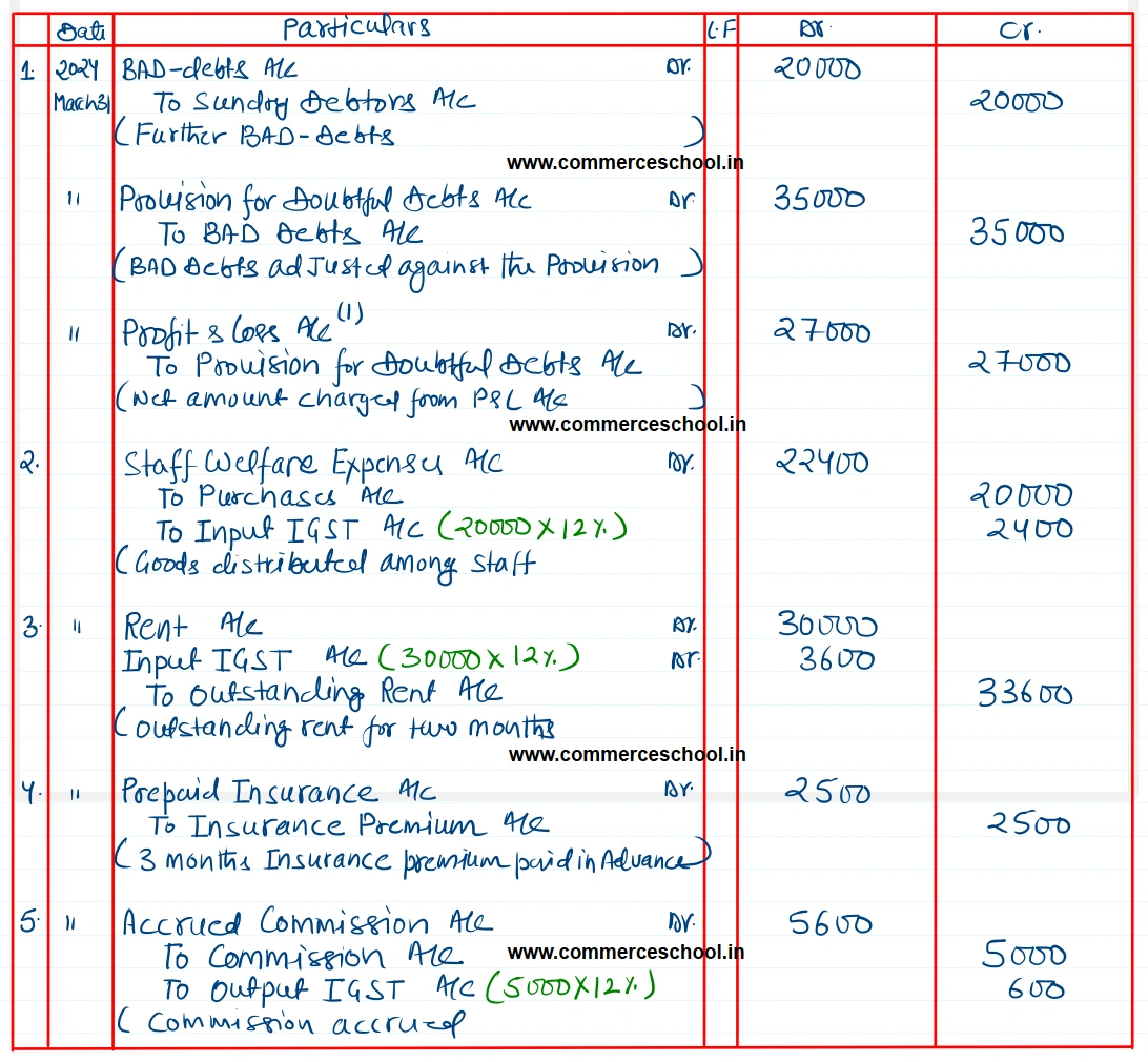 5. Accrued commission ₹ 5,000. IGST is levied @ 12%.