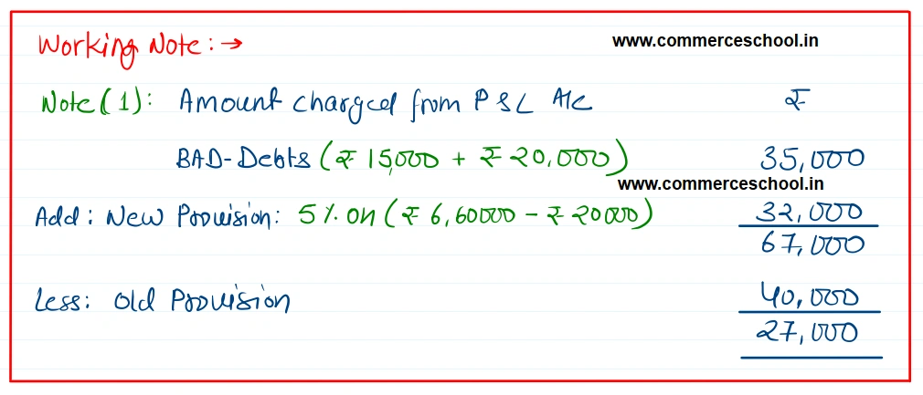 (b) Maintain the provision for doubtful debts @ 5% on debtors.