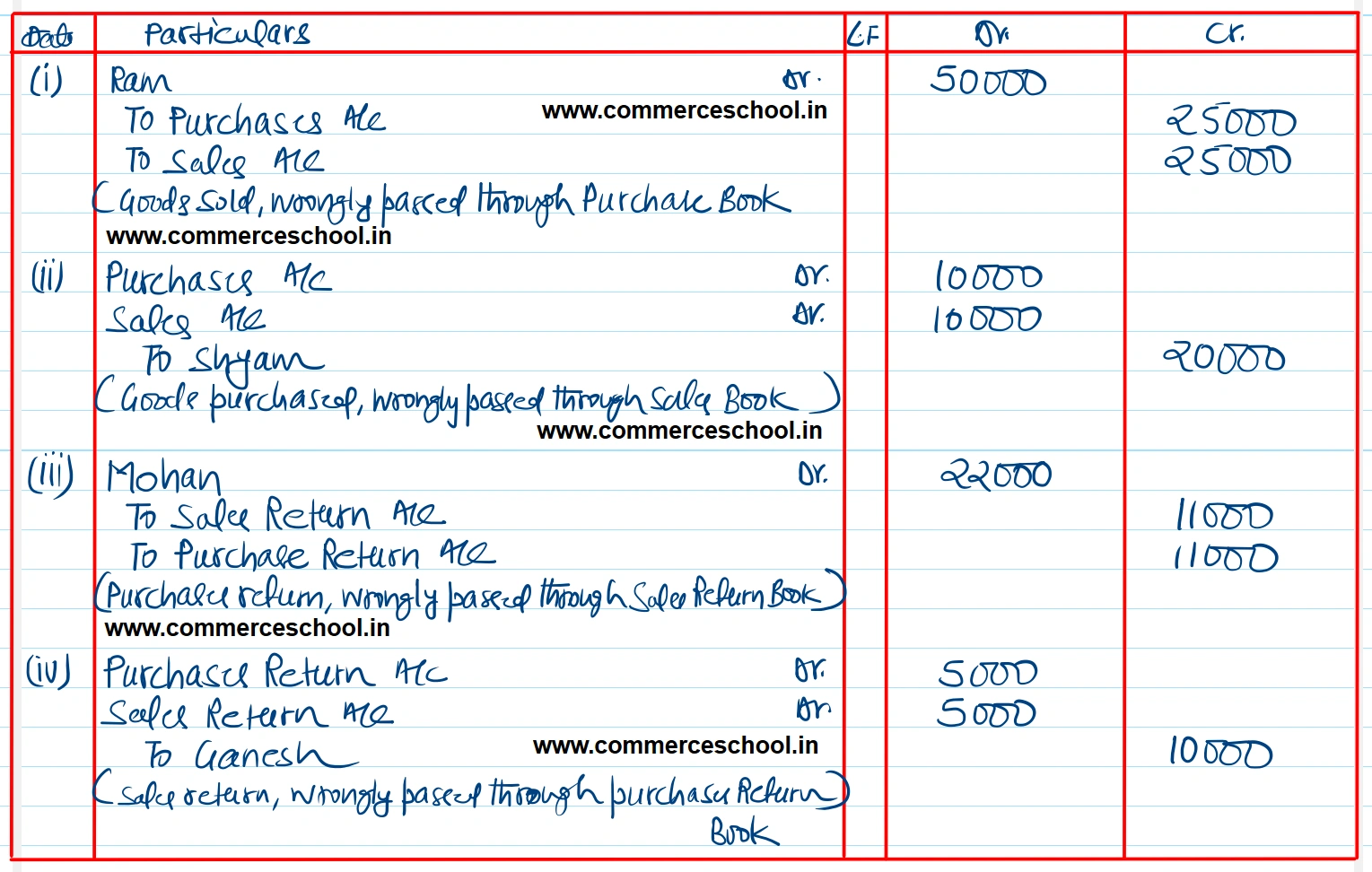 (i) A credit sales of goods to Ram ₹ 25,000 has been wrongly passed through the ‘Purchases Book’.