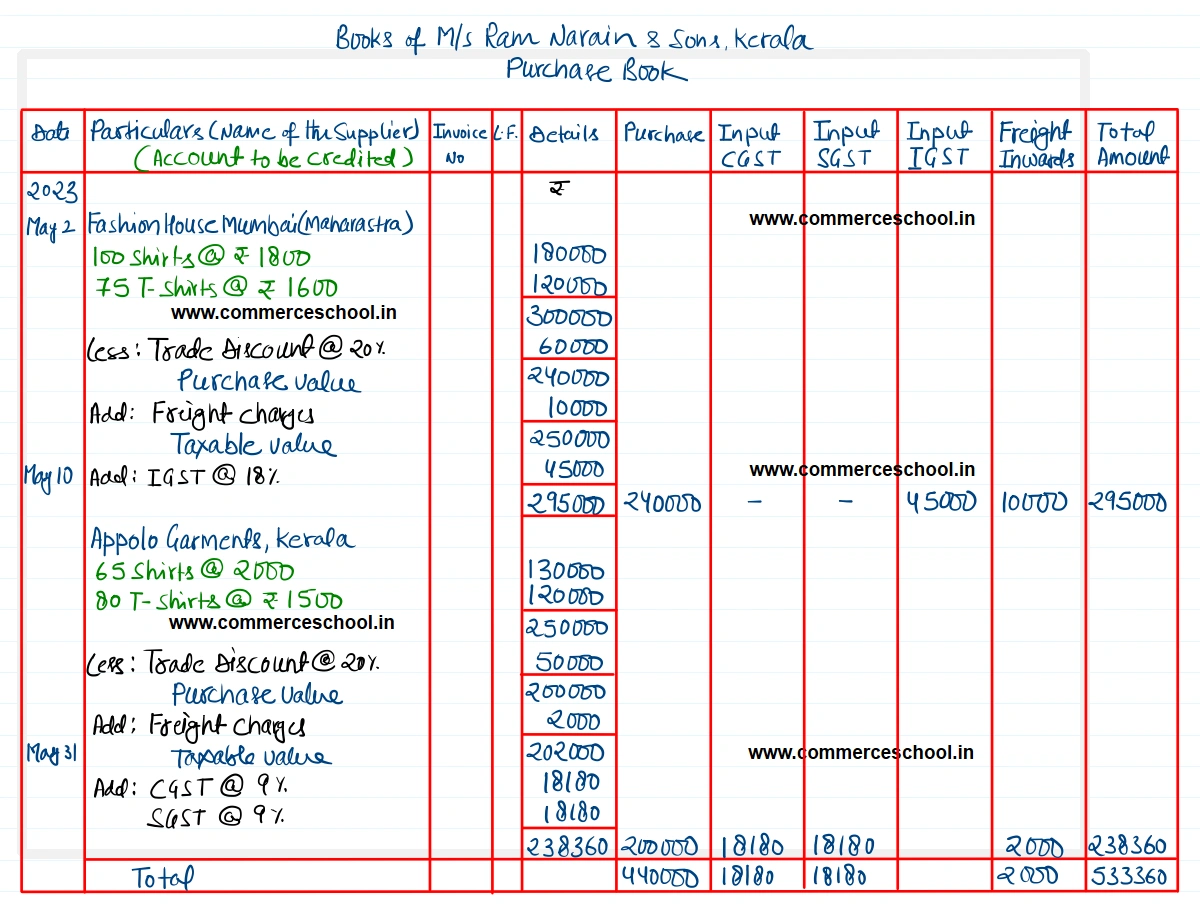 M/s Ram Narain & Sons of Kerala, who are dealers in readymade garments. purchased the following: