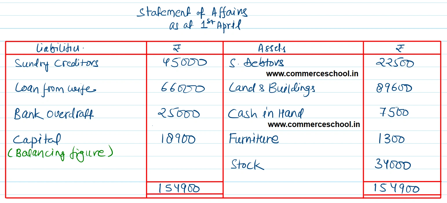 Mr. White does not keep his books properly. Following information is available from his books: