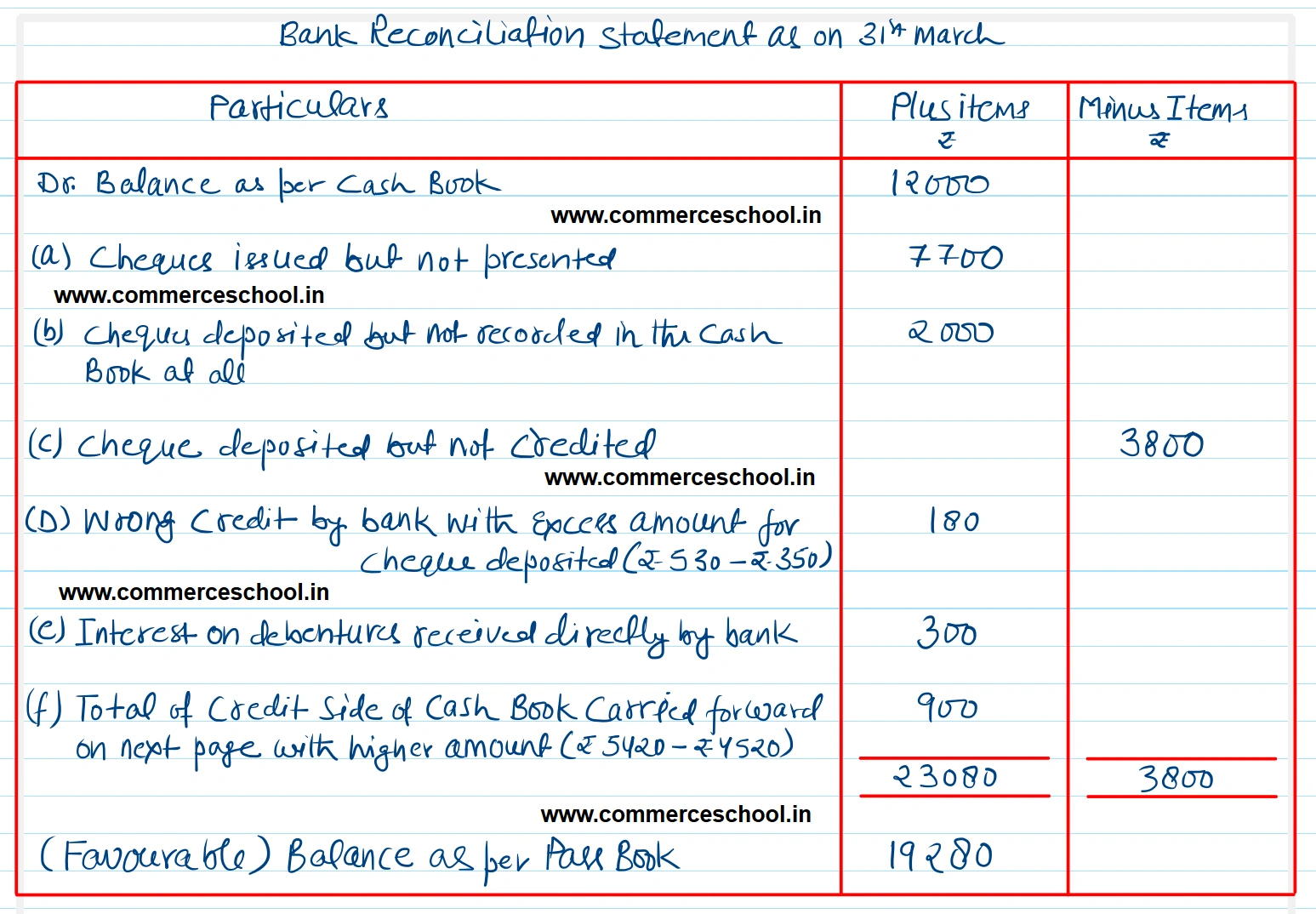(c) Cheques deposited in bank but not credited ₹ 3,800.