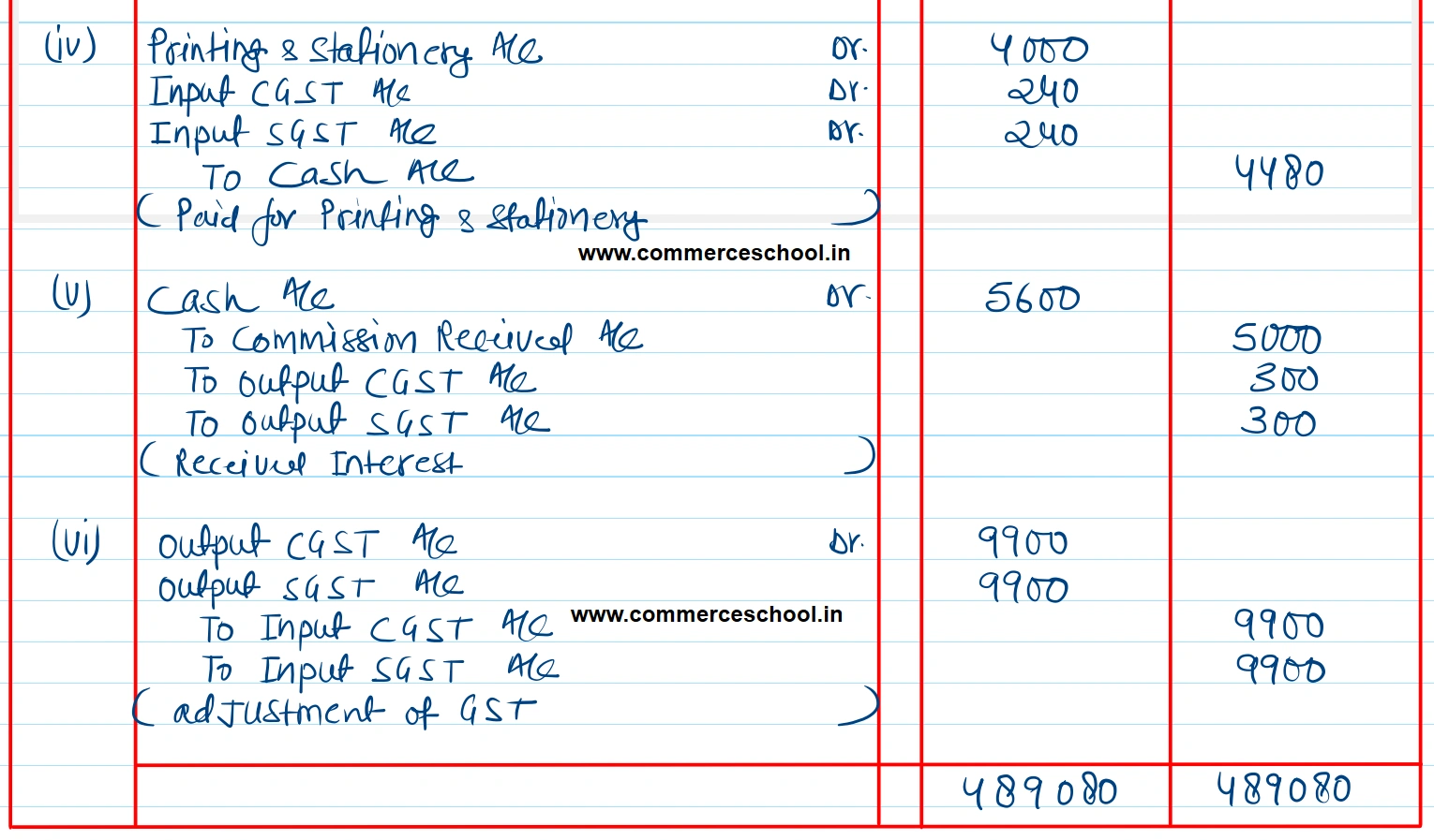 | (v) | Received for commission ₹ 5,000. |
