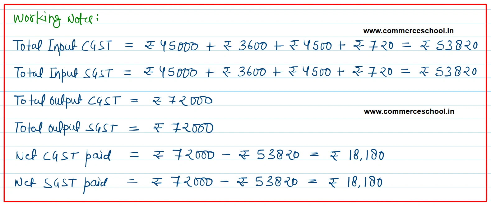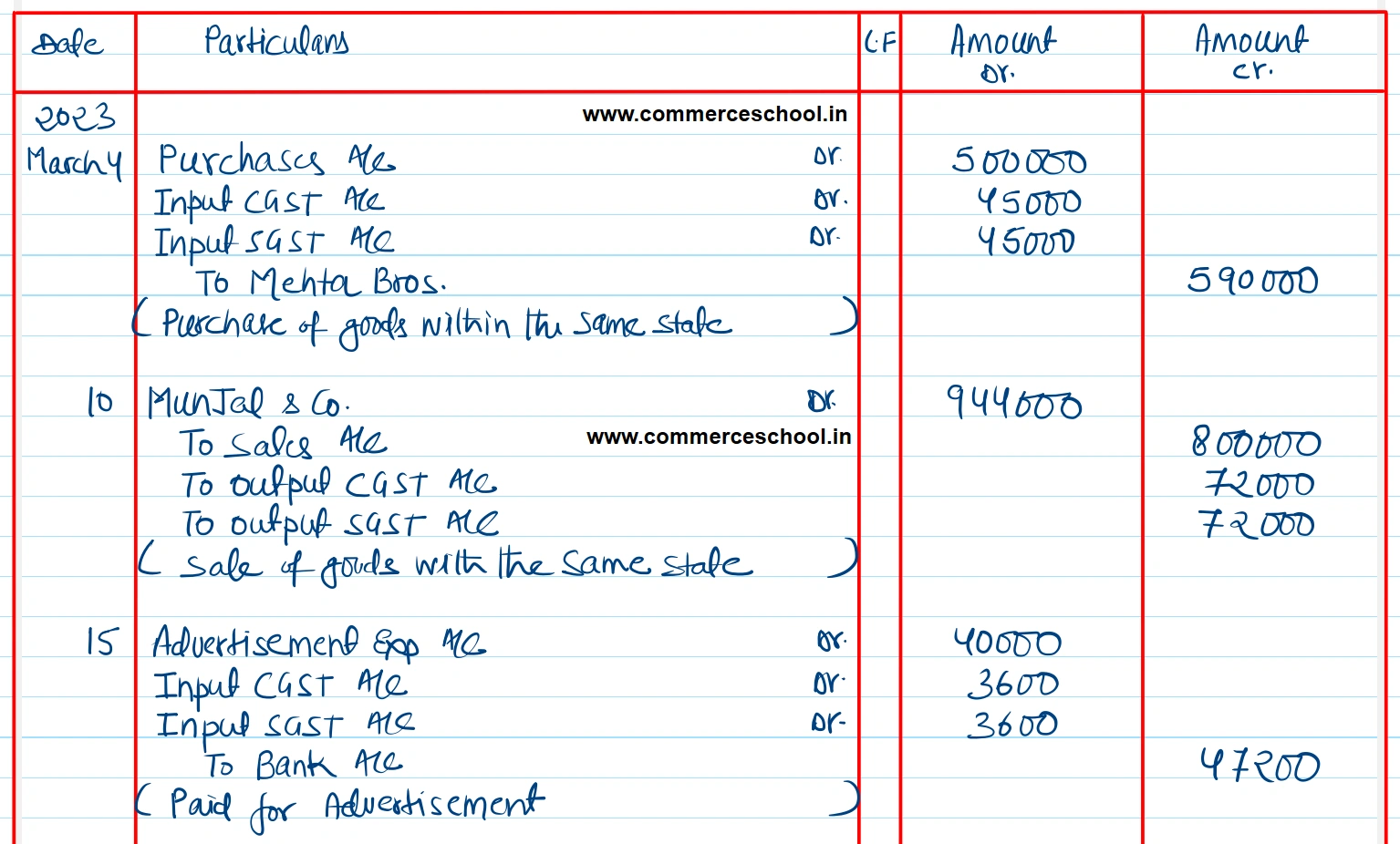 | March 31 | Payment made of balance amount of GST |