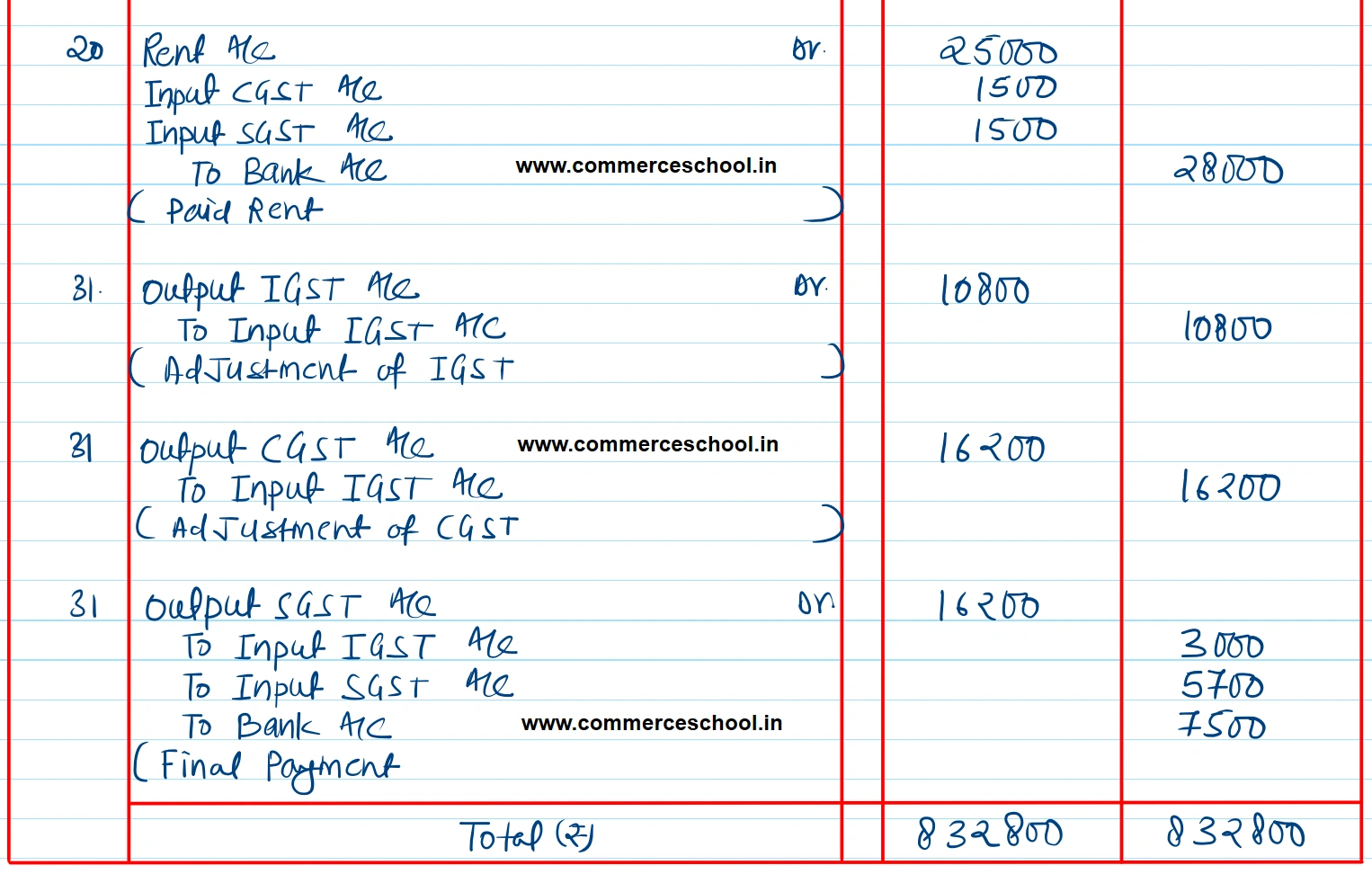 | March 31 | Payment made of balance amount of GST |