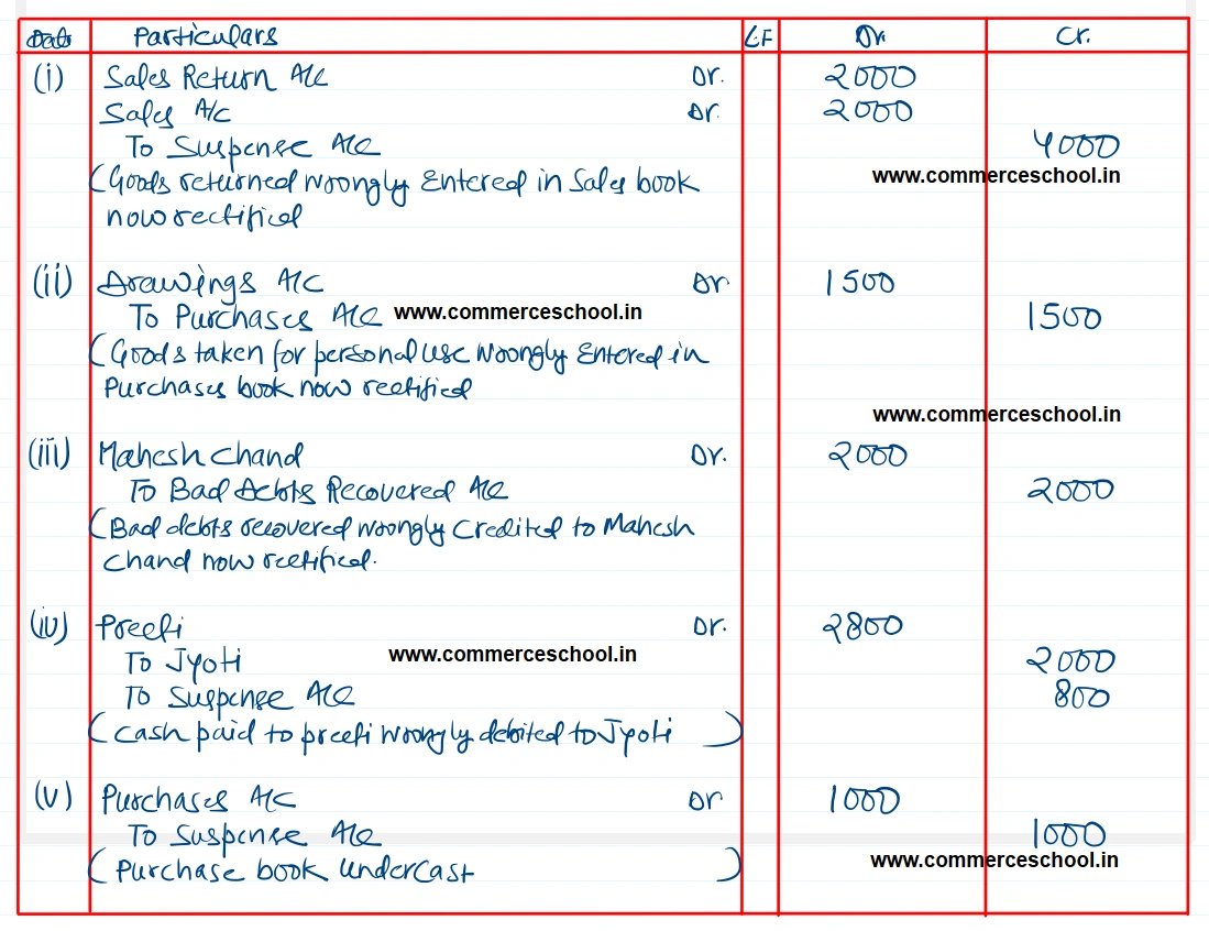 (v) Purchases book is undercast by ₹ 1,000