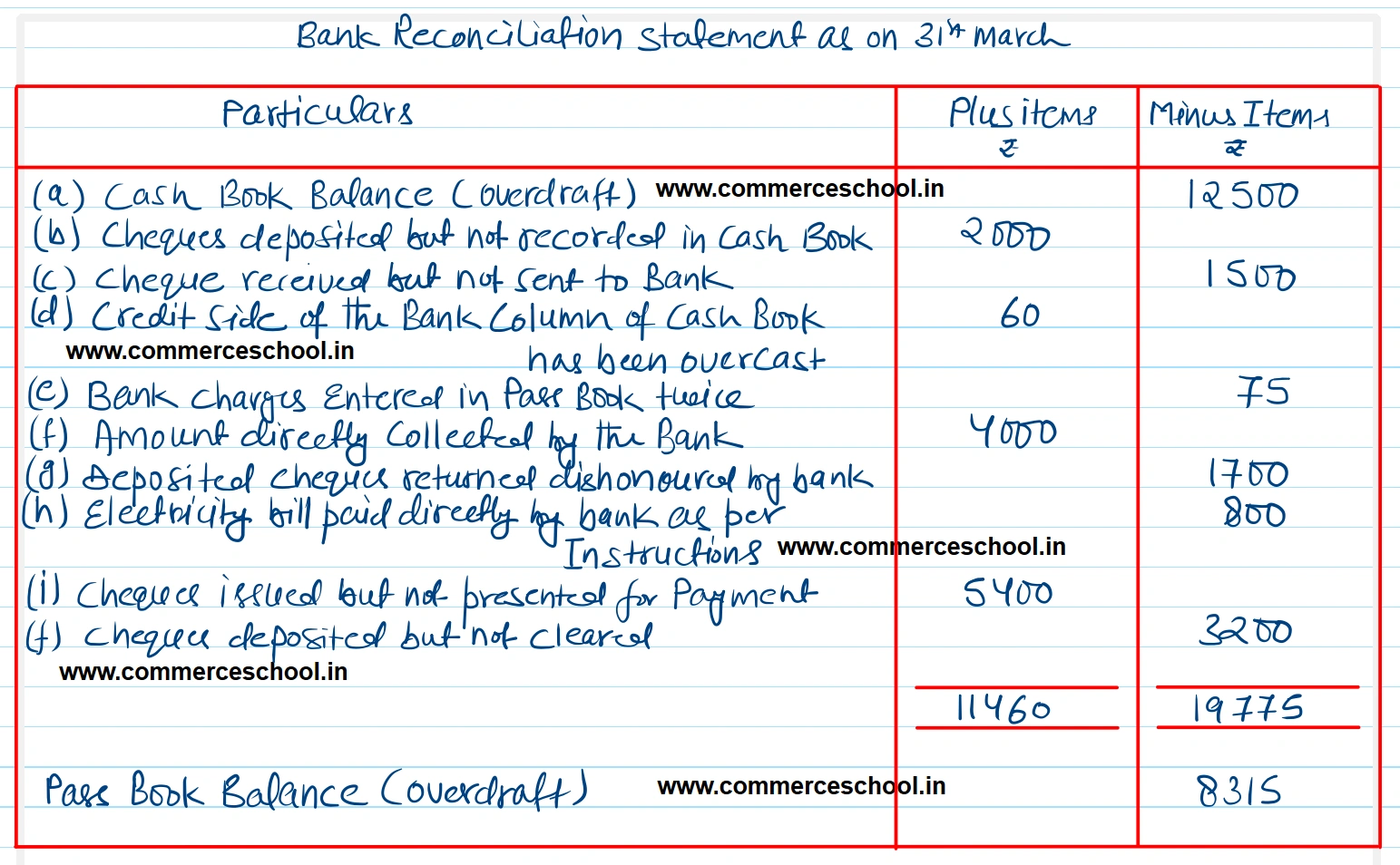 [Ans. Pass Book Overdraft ₹ 8,315.]