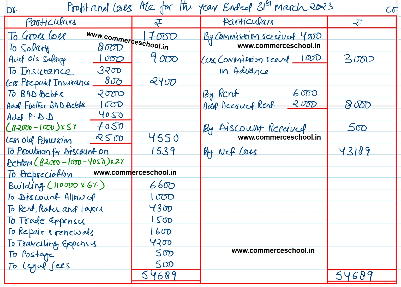 | Discount allowed | 1,000 | Commission received | 4,000 |