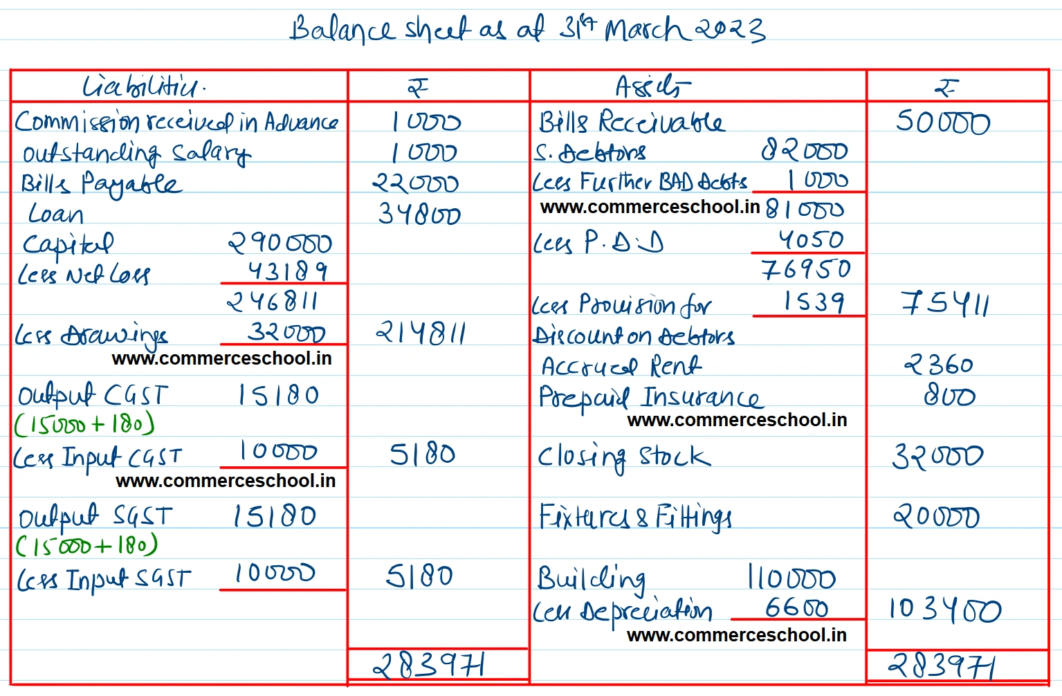 | Fixtures and fittings | 20,000 | Output CGST | 15,000 |