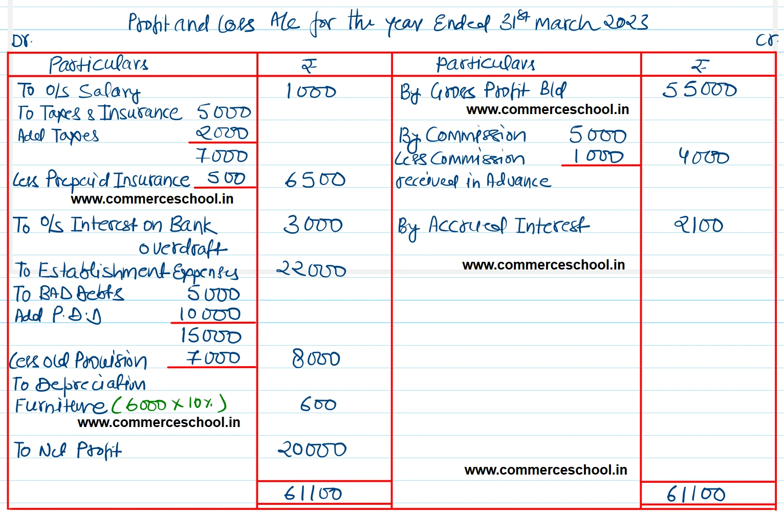 3. Interest ₹ 2,100 is to be received on Deposits and Interest on Bank Overdraft ₹ 3,000 is to be paid.