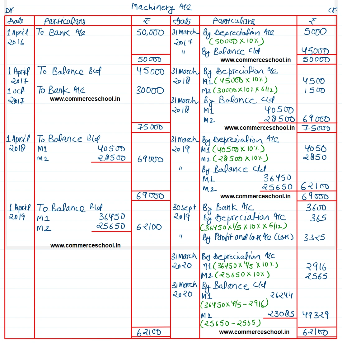 [Ans. Loss on sale of Machinery ₹ 3,325; Balance of Machinery A/c on 31st March, 2020, ₹ 49,329.]