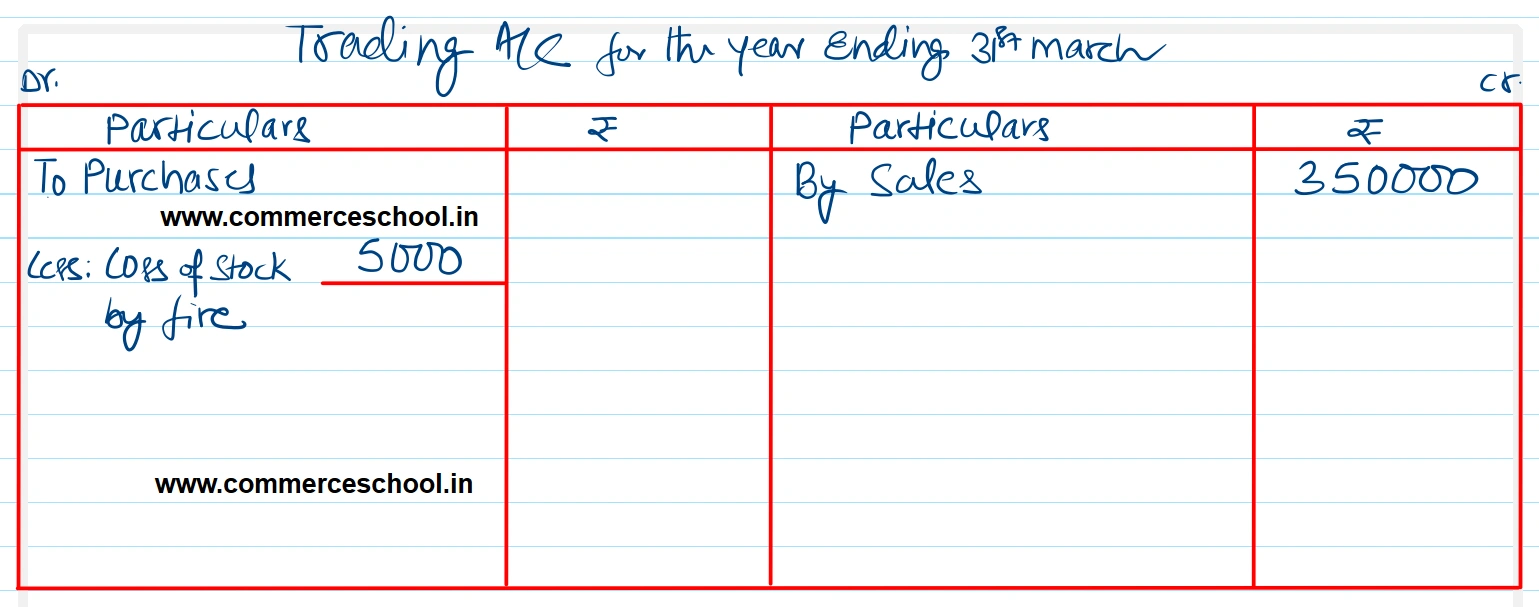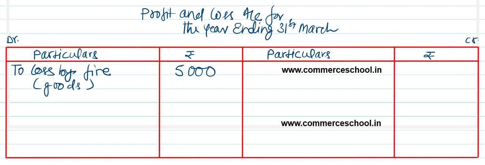 Ramesh valued stock at the end of the year at ₹ 1,00,000. Goods costing ₹ 5,000 were destroyed by fire during the accounting period. Show the treatment if the goods are not insured.