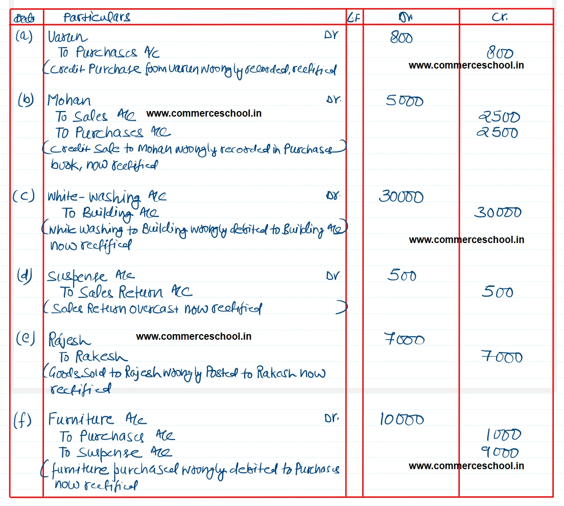 (a) Credit purchase from Varun ₹ 8,000 was recorded as ₹ 8,800.