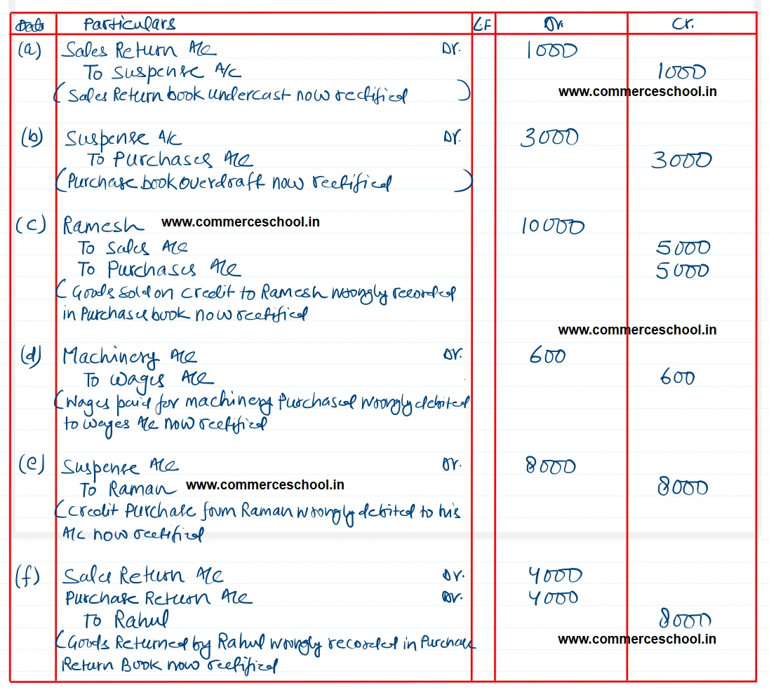 (c) Goods sold on credit to Ramesh ₹ 5,000 were recorded in purchases book.